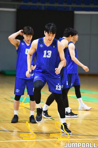[점프볼=태백/문복주 기자] 전주 KCC가 지난 20일부터 강원도 태백에서 올해 첫 전지훈련을 시작했다. 첫 이틀 동안 크로스컨트리 훈련으로 에너지를 폭발시켰던 선수들은 태백고원체육관에서 22일 오전 스트레칭을 시작으로 장치물을 이용해 워밍업을 하고, 전창진 감독의 호루라기 소리에 협력 수비 훈련을 소화했다.