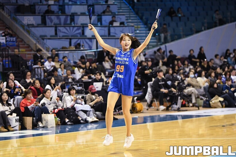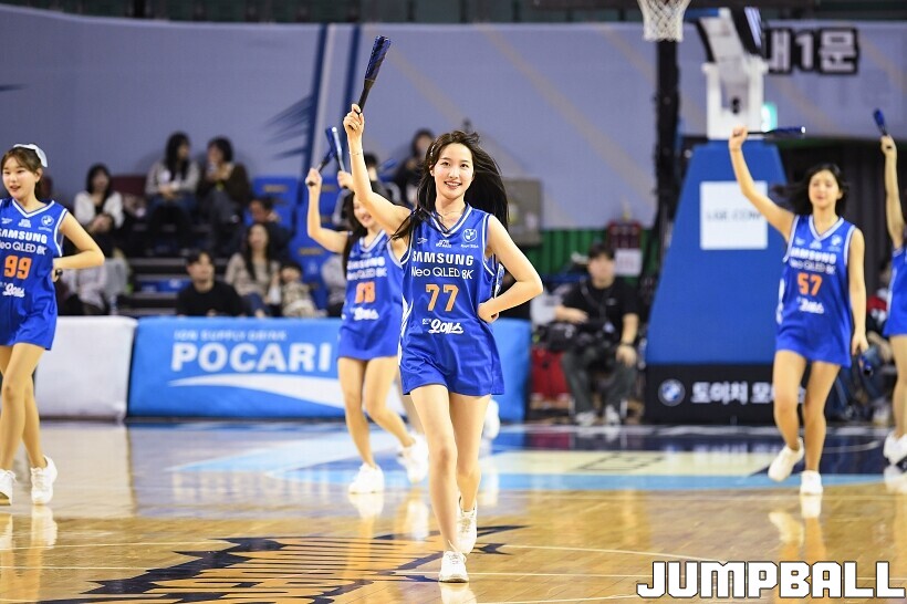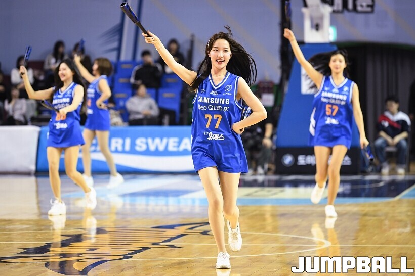 [점프볼=잠실/유용우 기자] 23일 잠실실내체육관에서 열린 2025-2026 LG전자 프로농구 서울 삼성과 울산 현대모비스의 경기, 삼성 치어리더들이 7연패 탈출을 기원하며 응원전을 펼치고 있다.