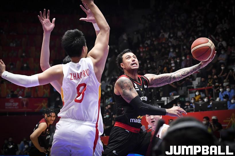1쿼터부터 중국은 3점슛과 골밑을 공략해 매섭게 몰아쳤고, 득점차가 벌어지기 시작했다. 아시아컵과 농구월드컵을 위해 인도네시아로 귀화한 마퀴스 볼든은 중국의 왕저린과 저우치가 번갈아가면서 수비해 높이에 부담감을 느껴 골밑은 다가오지 못하고 3점 라인과 미들슛 라인에서 머물러 더욱이 경기가 풀리지 않게 되었다.