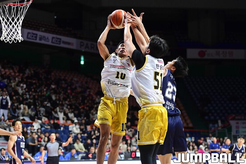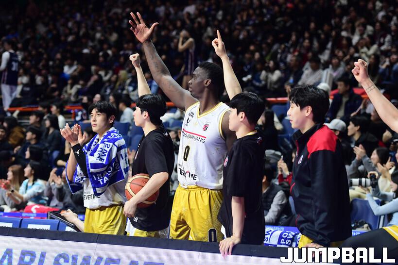 [점프볼=부산/박상혁 기자] 4일 부산사직체육관에서 열린 2025-2026 LG전자 프로농구 부산 KCC와 안양 정관장의 경기, 정관장이 KCC에 77-72로 승리했다.