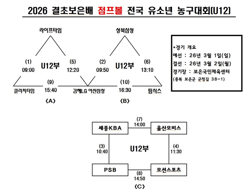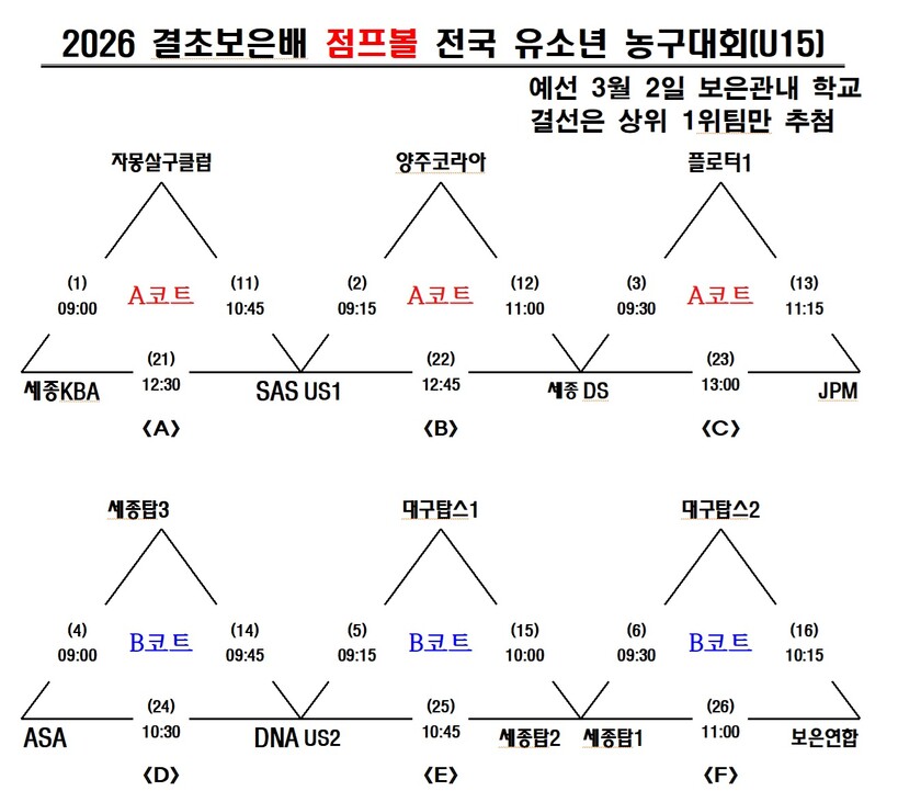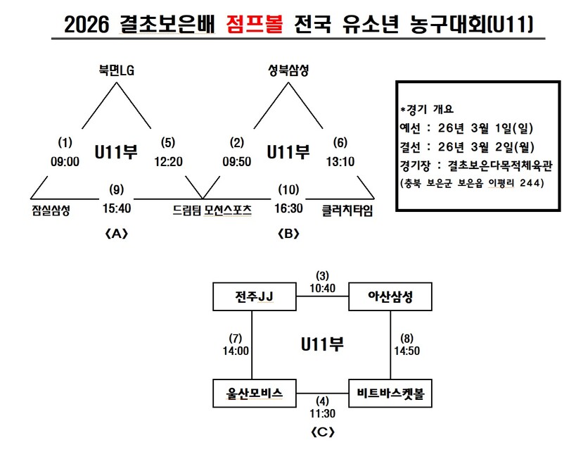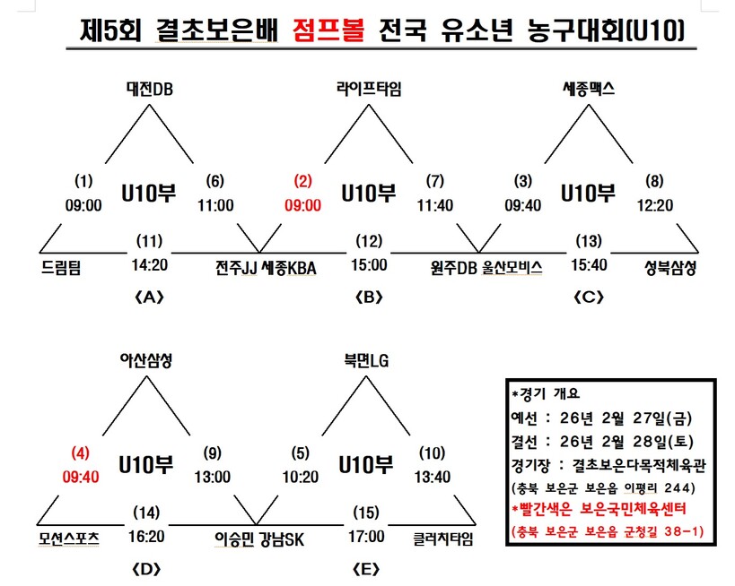 *제5회 결초보은배 점프볼 전국 유소년 농구대회 대진표*