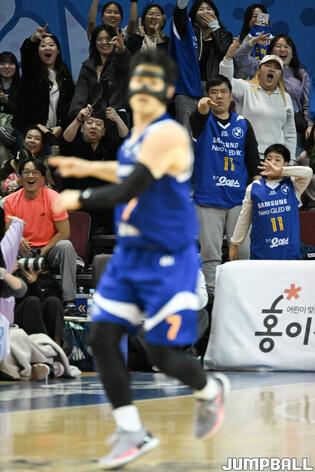 [점프볼=잠실/유용우 기자] 18일 잠실실내체육관에서 열린 2023-2024 정관장 프로농구 서울 삼성과 울산 현대모비스의 경기, 삼성이 이정현의 연장전 끝내기 3점슛에 힘입어 94-91로 승리했다.