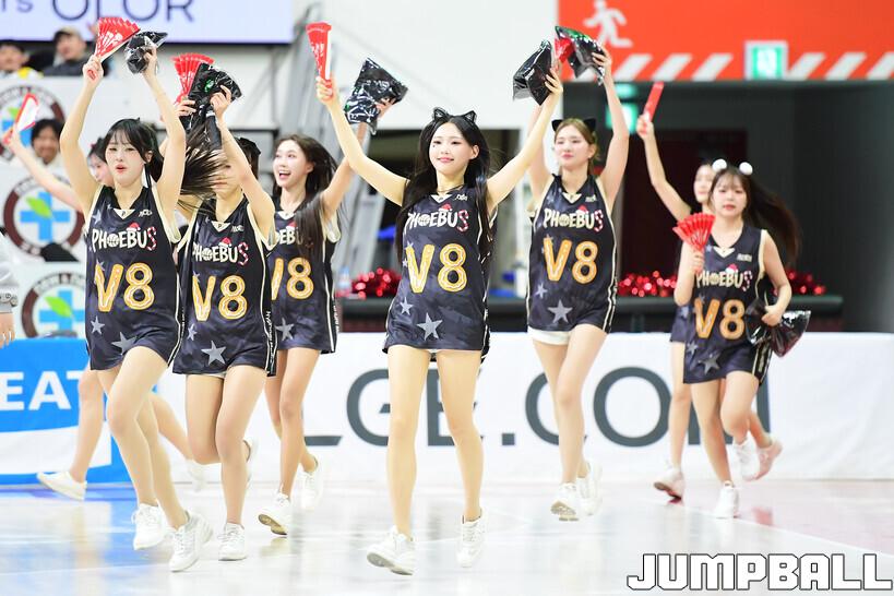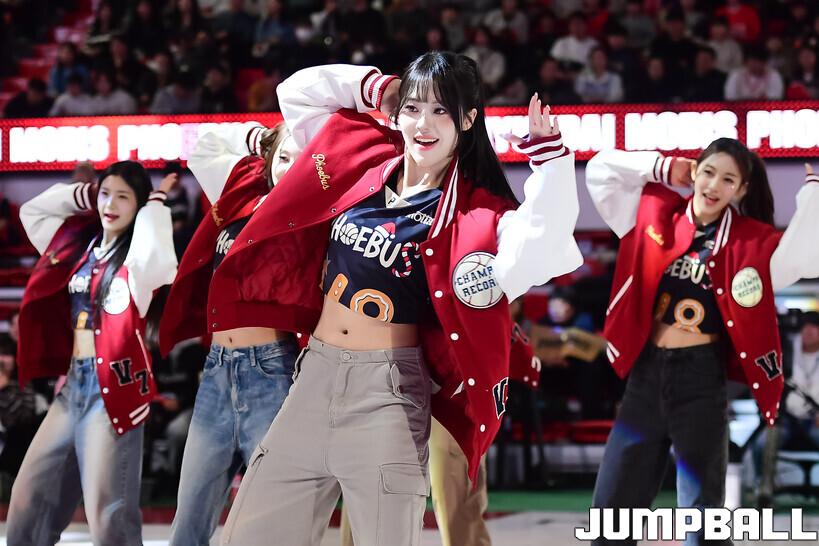 [점프볼=울산/박상혁 기자] 27일 울산동천체육관에서 열린 2025-2026 LG전자 프로농구 울산 현대모비스와 수원 KT의 경기, 현대모비스 치어리더가 승리를 위한 응원을 펼치고 있다.