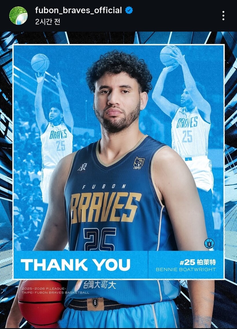 | ▲푸본과 결별한 보트라이트. 가스공사와 계약을 체결했다. 사진/푸본브레이브스 인스타그램 |
