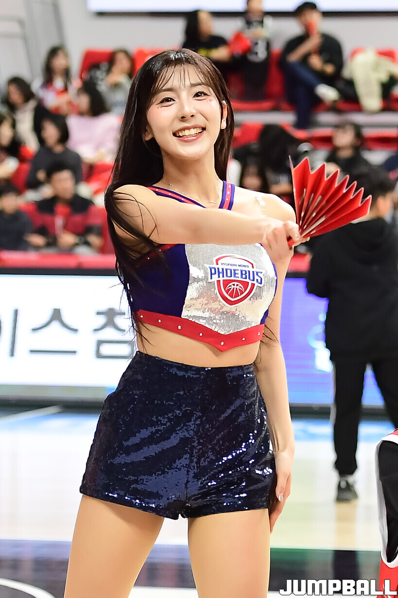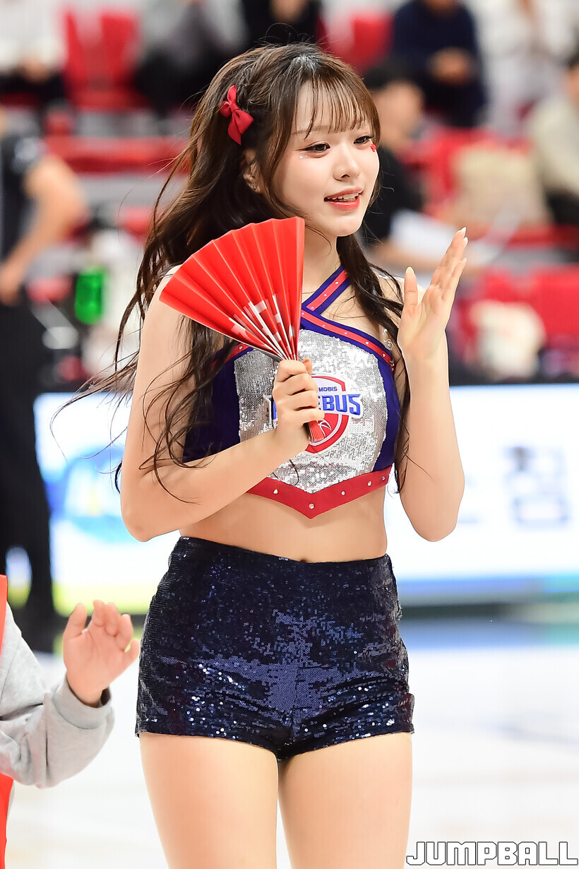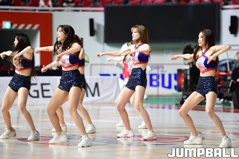 [점프볼=울산/박상혁 기자] 13일 울산동천체육관에서 열린 2025-2026 LG전자 프로농구 울산 현대모비스와 서울 삼성의 경기, 현대모비스 치어리더가 승리를 위해 팬들과 함께 응원을 하고 있다.