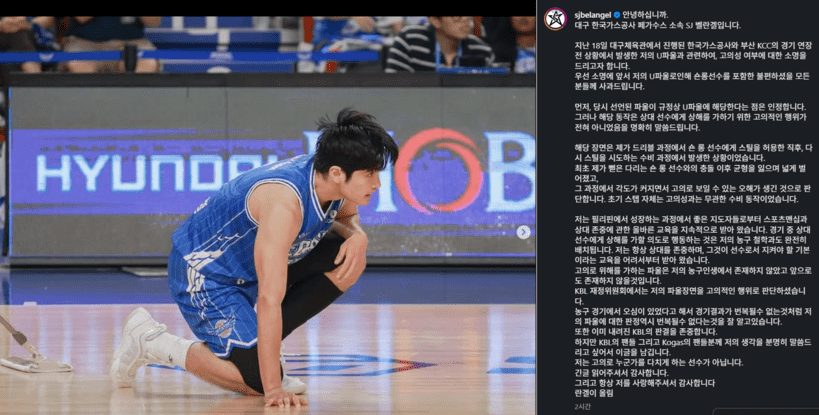 [점프볼=홍성한 기자] “저는 고의로 누군가를 다치게 하는 선수가 아닙니다. 긴 글 읽어주셔서 감사합니다.”