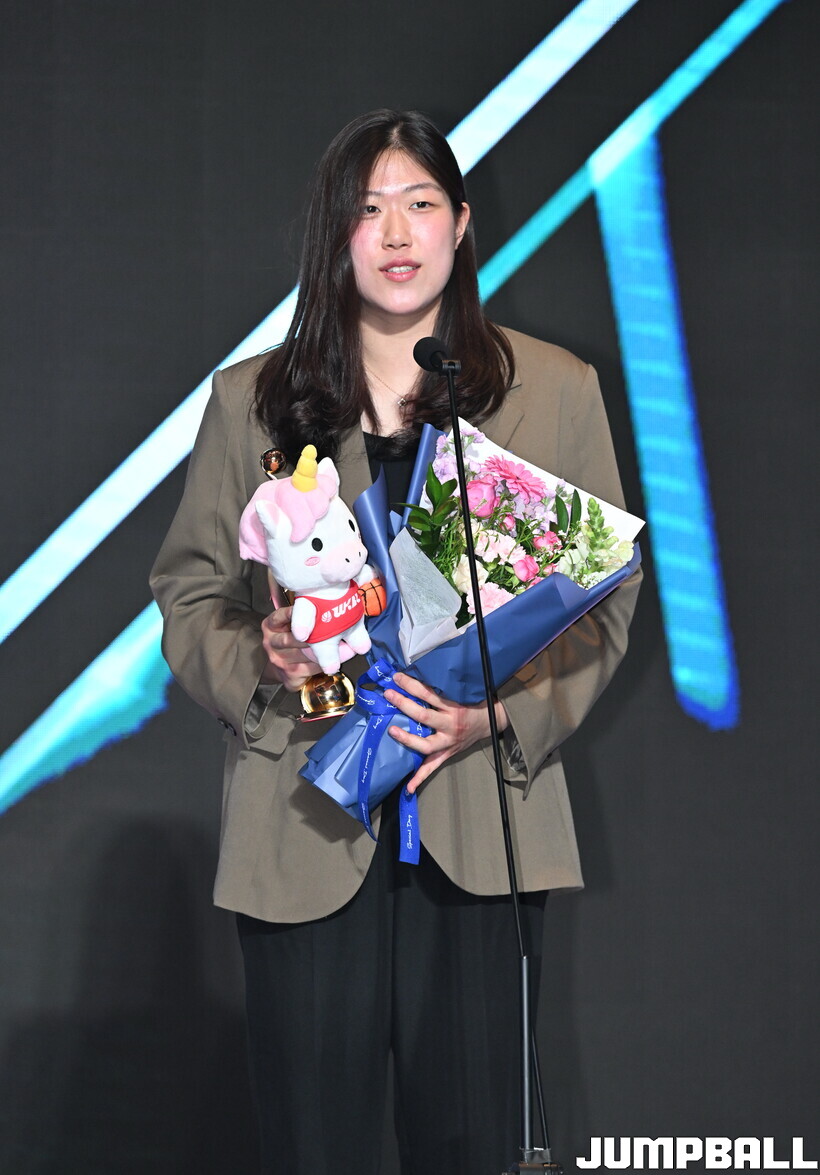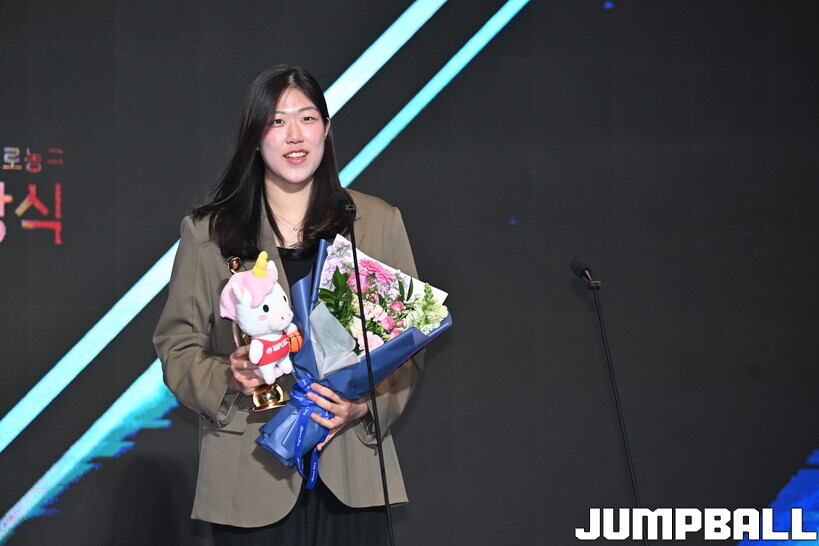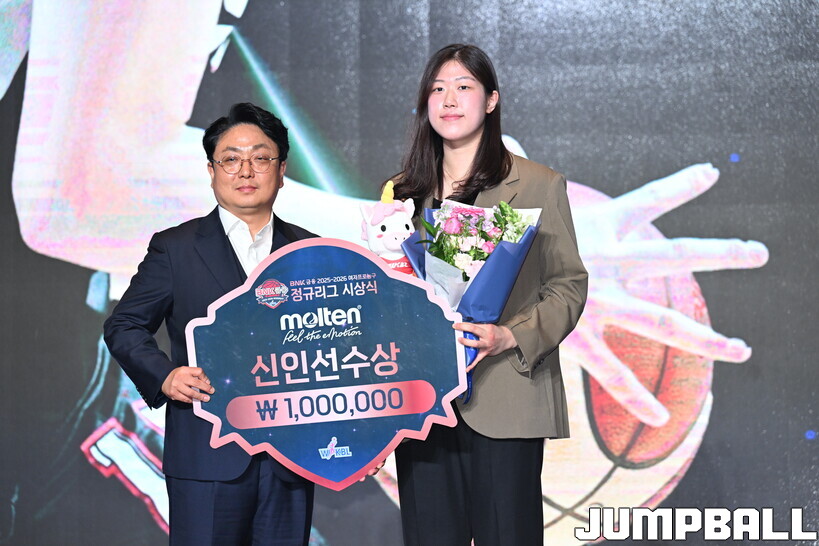 6일 서울 용산구 서울드래곤시티호텔 그랜드볼룸 한라홀에서 열린 BNK금융 2025~2026 여자프로농구 정규리그 시상식. 몰텐 신인선수상의 주인공은 부산 BNK썸 김도연이었다.