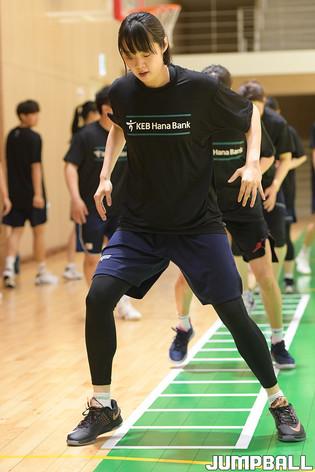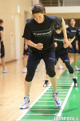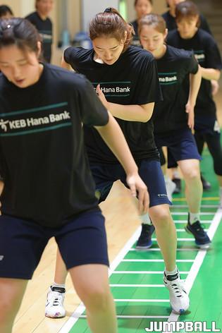 [점프볼=청라/박상혁 기자] 11일 인천 청라에 위치한 하나은행 연습체육관, 하나은행 최민주가 볼을 이용한 훈련을 하고 있다.