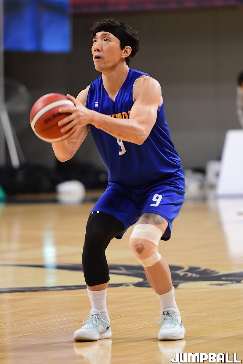 [점프볼=신촌/박상혁 기자] 3일 연세대학교 신촌캠퍼스 체육관에서 열린 '2025 KOREA CUP 최강전' 아울스와 업템포의 준결승 경기, 업템포 김상훈이 3점슛을 시도하고 있다.