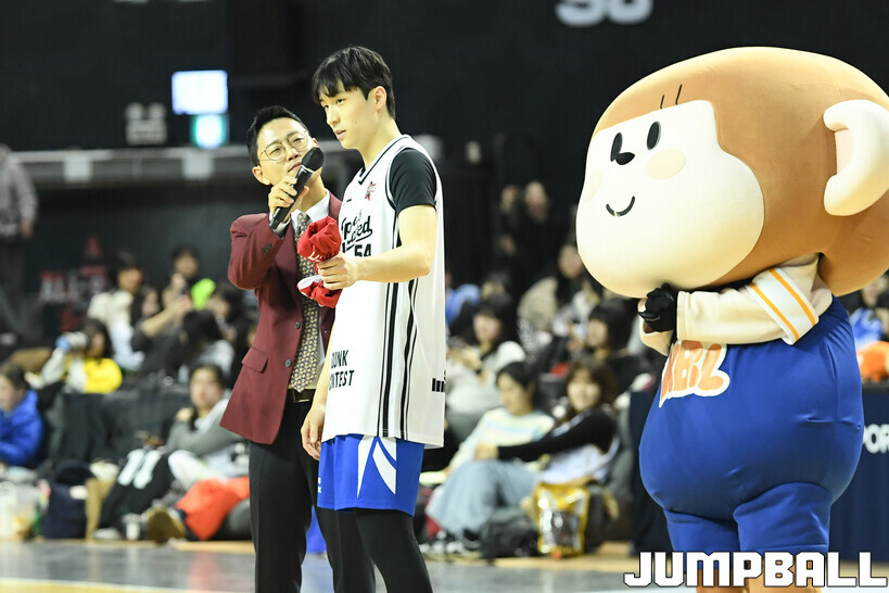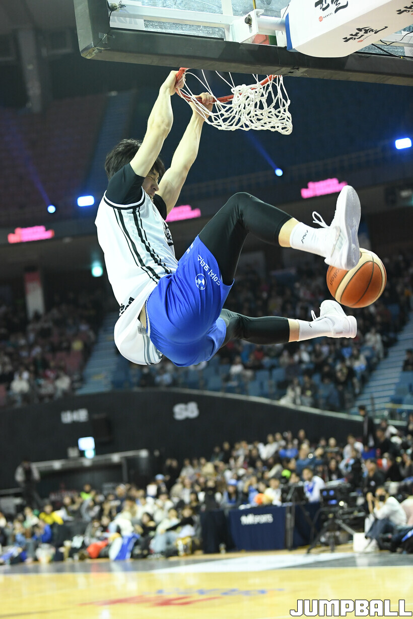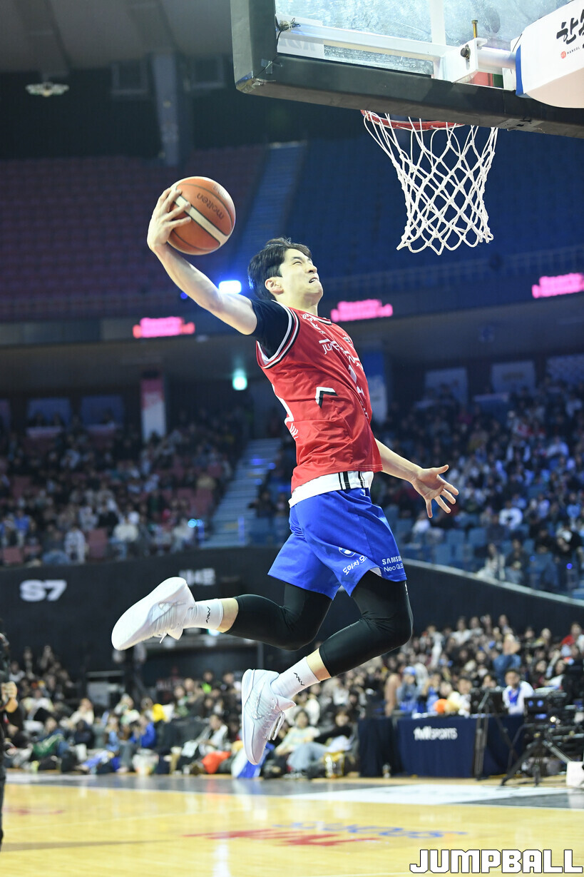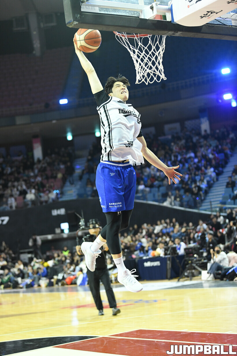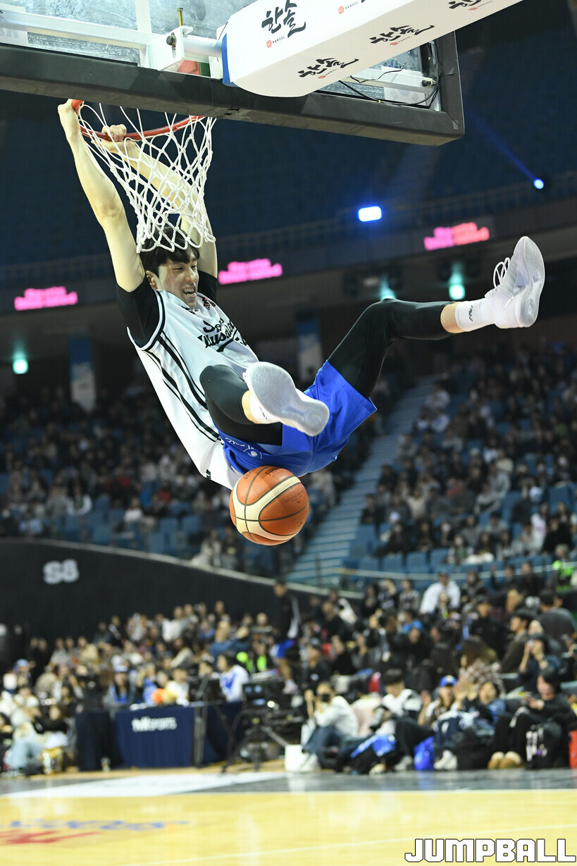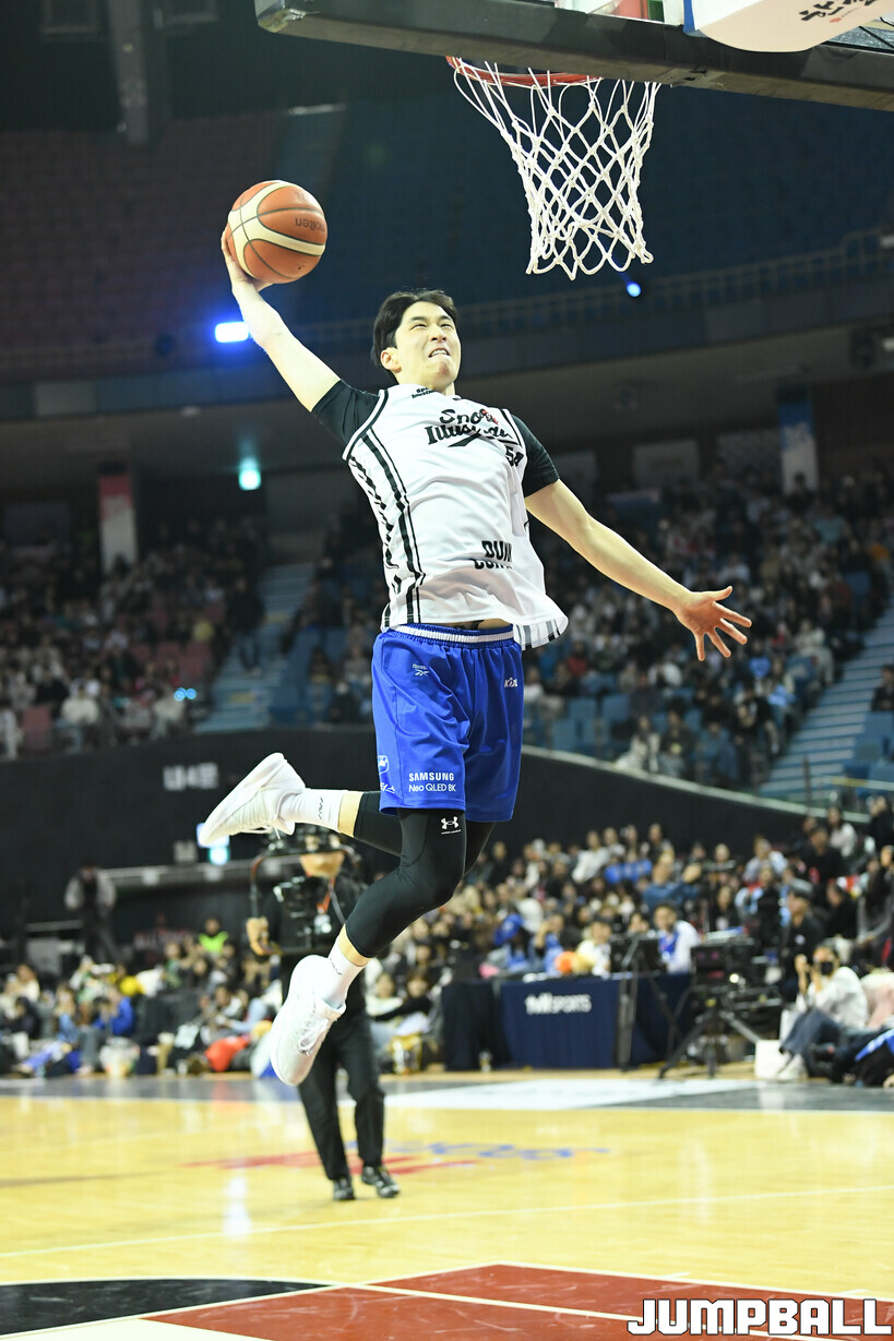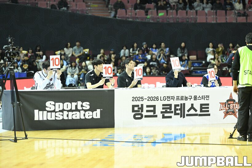[점프볼=잠실/유용우 기자] 17일 잠실체육관에서 열린 2025-2026 LG전자 프로농구 올스타게임 전야제 스포츠일러스트레이티드(SI) 덩크 콘테스트 예선, 삼성 조준희가 화려한 덩크를 선보이며 팬들의 함성을 이끌었다. 정관장 아반도의 유니폼을 입고 연이은 덩크를 성공한 조준희는 심사위원들에게 올텐을 받으며 덩크 콘테스트 결선에 진출했다. 조준희가 2연패를 노리는 덩크 콘테스트 결선은 18일 올스타전 하프타임에 진행된다.