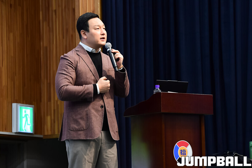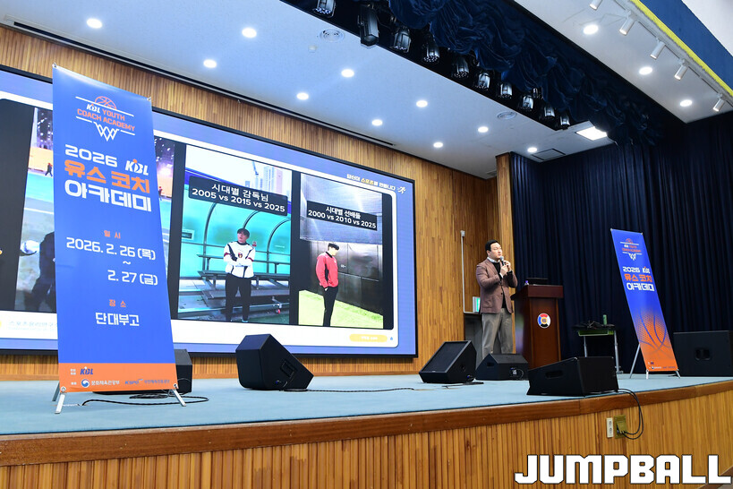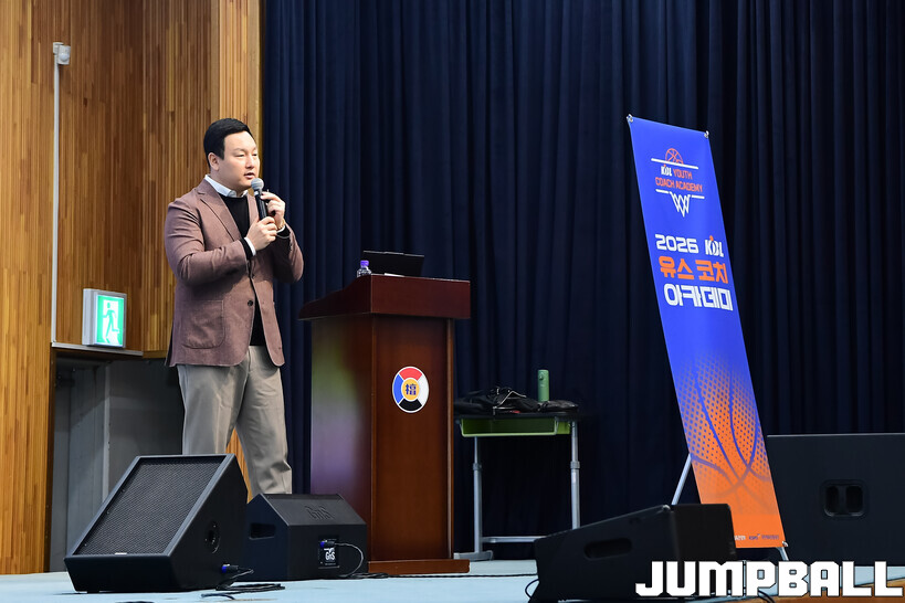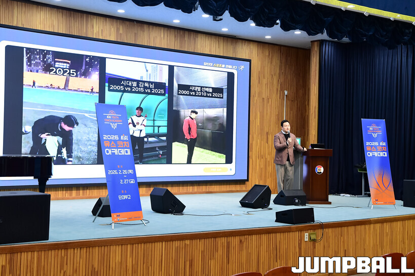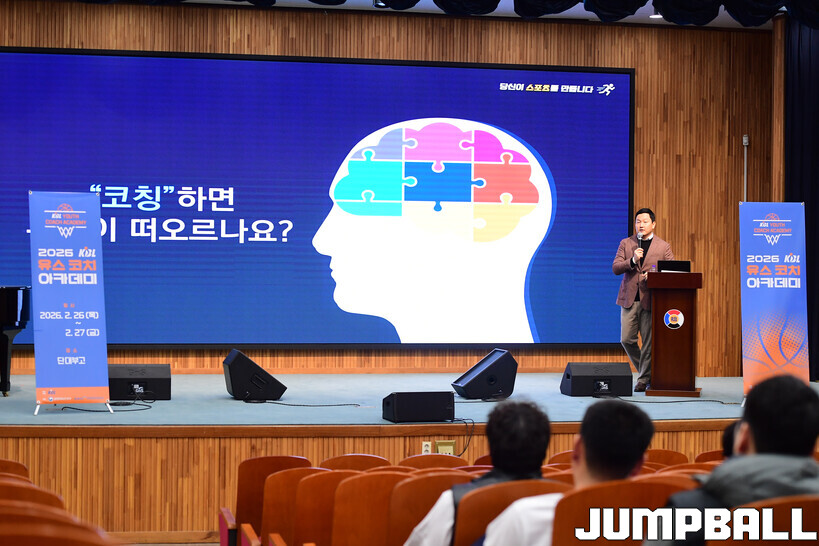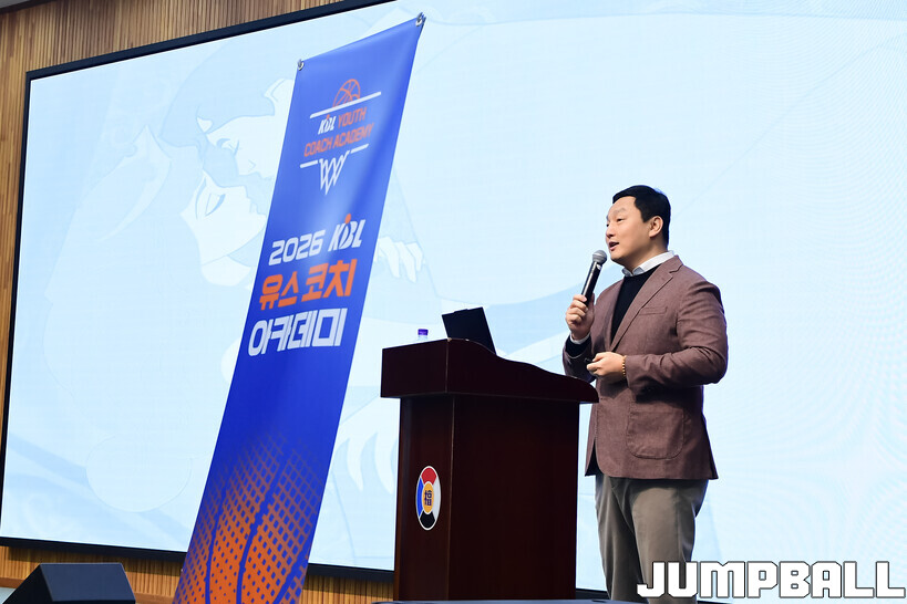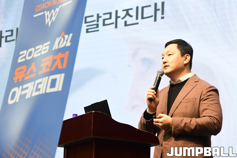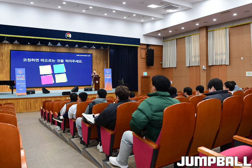 [점프볼=도곡/박상혁 기자] 27일 단대부중·고 체육관에서 진행된 2026 KBL 유스 코치아카데미 4기 교육 2일 차 일정, 오전 첫 시간에는 임효성 안양대학교 체육학과 교수가 리더쉽 교육을 진행했다.