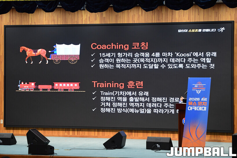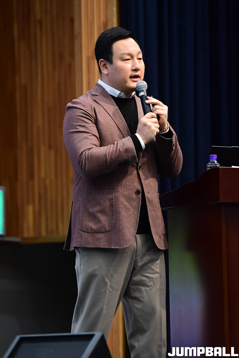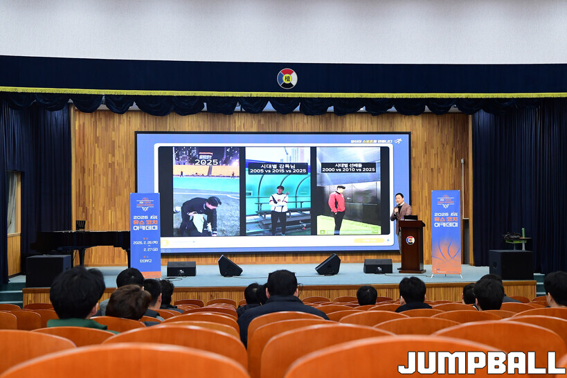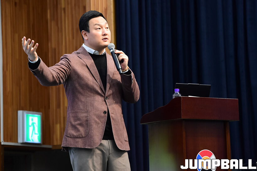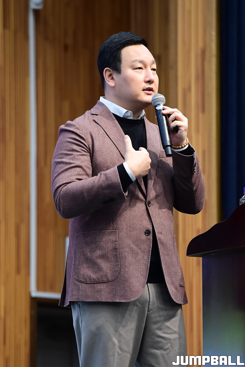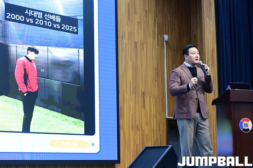 [점프볼=도곡/박상혁 기자] 27일 단대부중·고 체육관에서 진행된 2026 KBL 유스 코치아카데미 4기 교육 2일 차 일정, 오전 첫 시간에는 임효성 안양대학교 체육학과 교수가 리더쉽 교육을 진행했다.