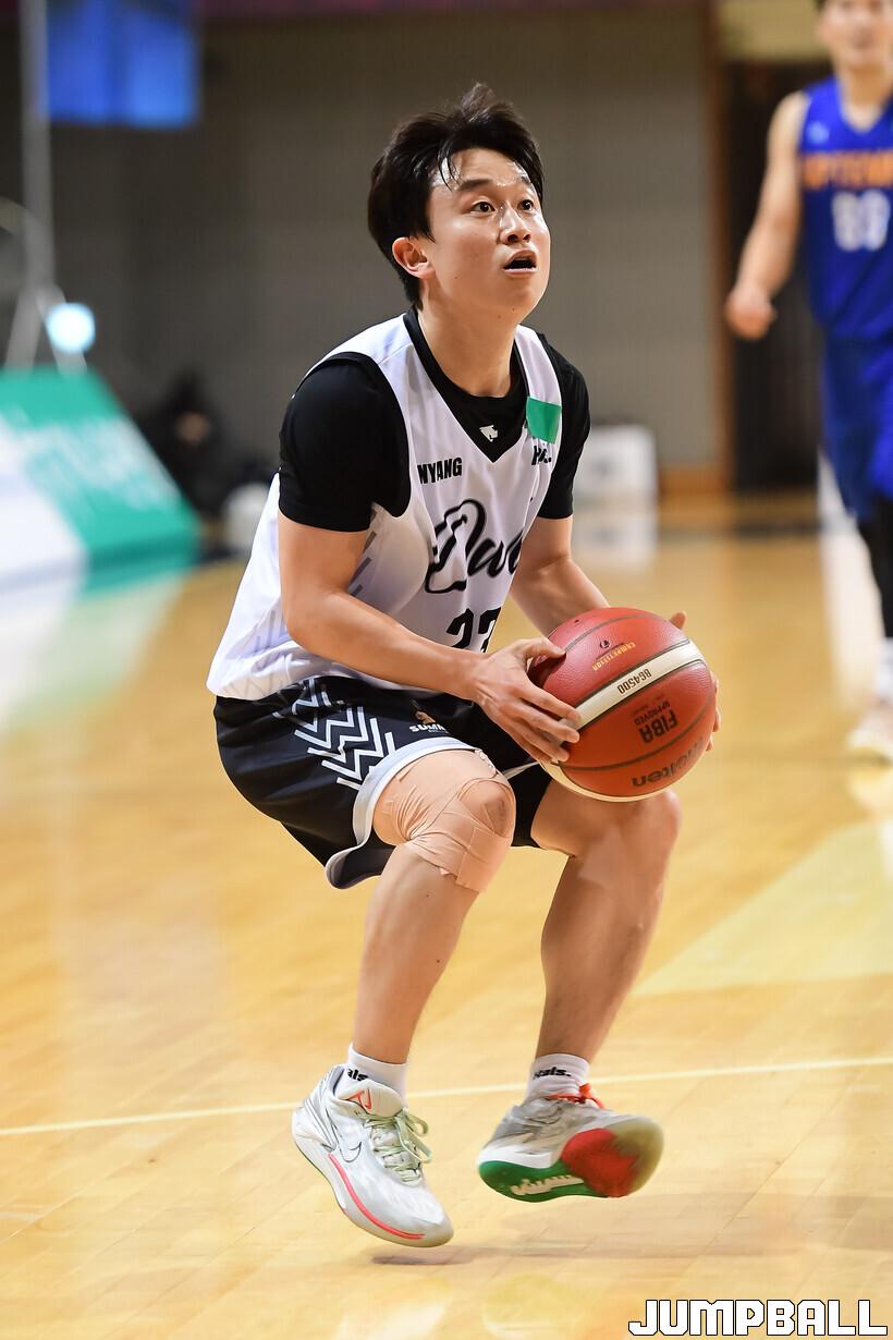 [점프볼=신촌/박상혁 기자] 3일 연세대학교 신촌캠퍼스 체육관에서 열린 '2025 KOREA CUP 최강전' 아울스와 업템포의 준결승 경기, 아울스 한준혁이 슛을 시도하고 있다.