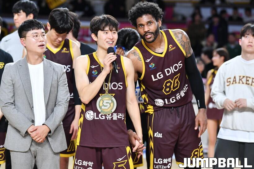 LG는 01년생 트리오(양준석-유기상-타마요)의 맹활약 하에 단독 3위로 올라섰다. 01년생 트리오에 대해서 “우리는 공통된 부분이 너무 많다. 농구를 너무 좋아한다. 밖에서도 농구적인 얘기를 너무 많이 한다. (유)기상이와 타마요 모두 팀의 승리와 함께 개인의 성장도 같이 이루고 싶어 한다. 우리가 지금 발전한 것처럼 보이지만, 감독님께서는 부족한 부분이 많아 보이실 것이다. 우리 셋 모두 감독님의 기대에 부응할 수 있도록 더 열심히 준비하겠다. 그래서 지금보다 좋은 선수가 될 수 있도록 최선을 다하겠다”라며 리그 최고의 선수가 되겠다는 포부를 다졌다.