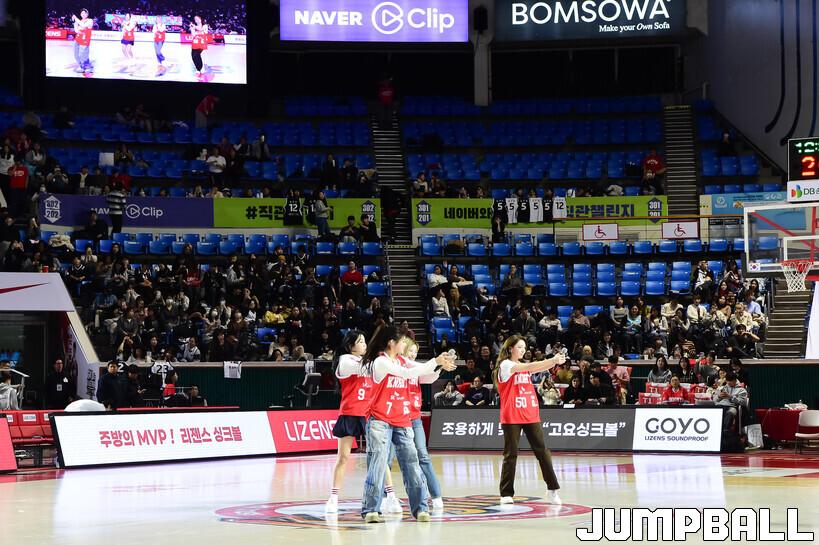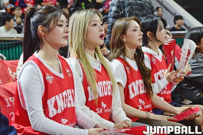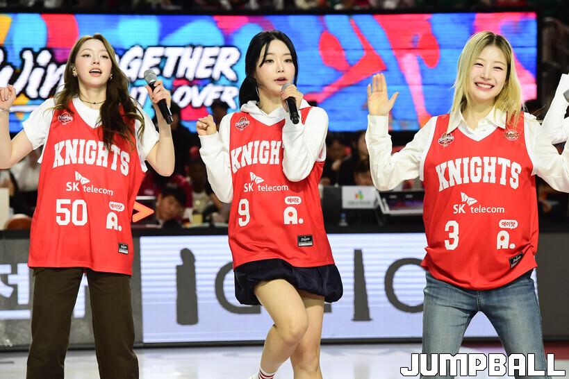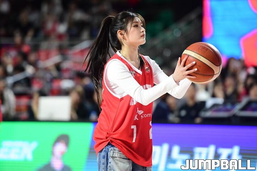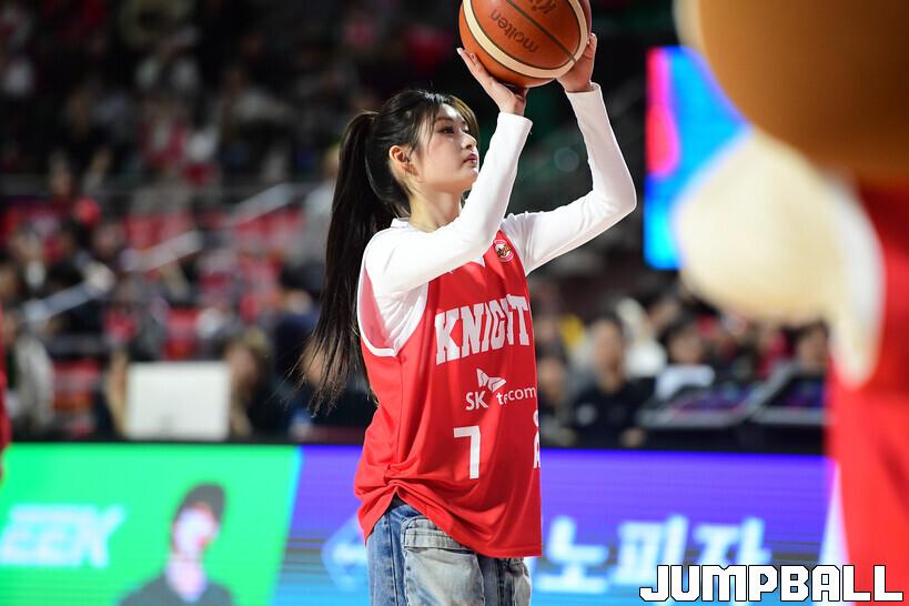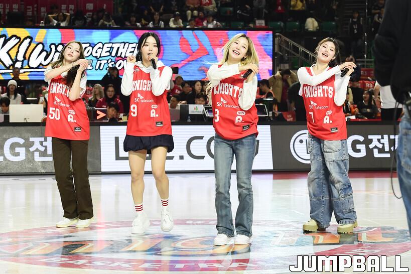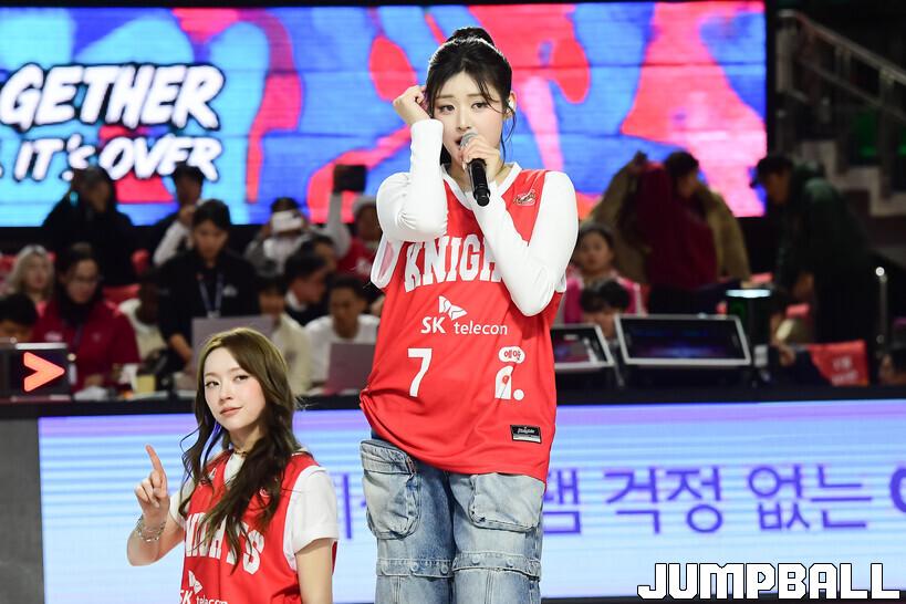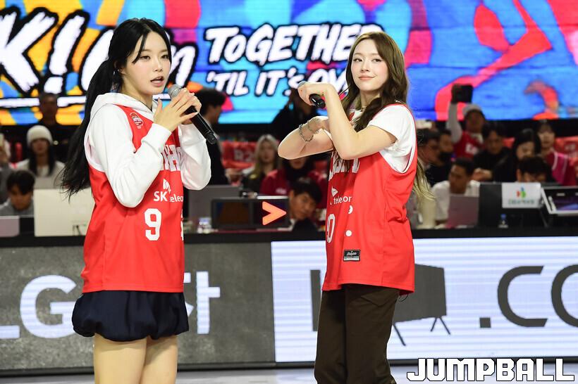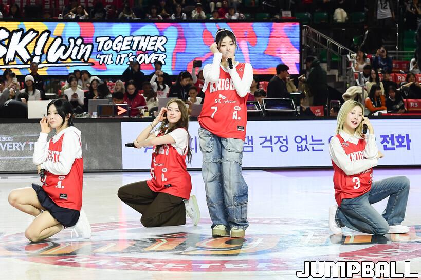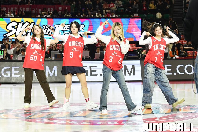[점프볼=잠실학생/박상혁 기자] 17일 잠실학생체육관에서 열린 2025-2026 LG전자 프로농구 서울 SK와 수원 KT의 경기, 5인조 걸그룹(키나,문샤넬,예원,하나,아테나) 피프티 피프티가 경기장을 찾아 시투와 특별 공연을 선보였다.