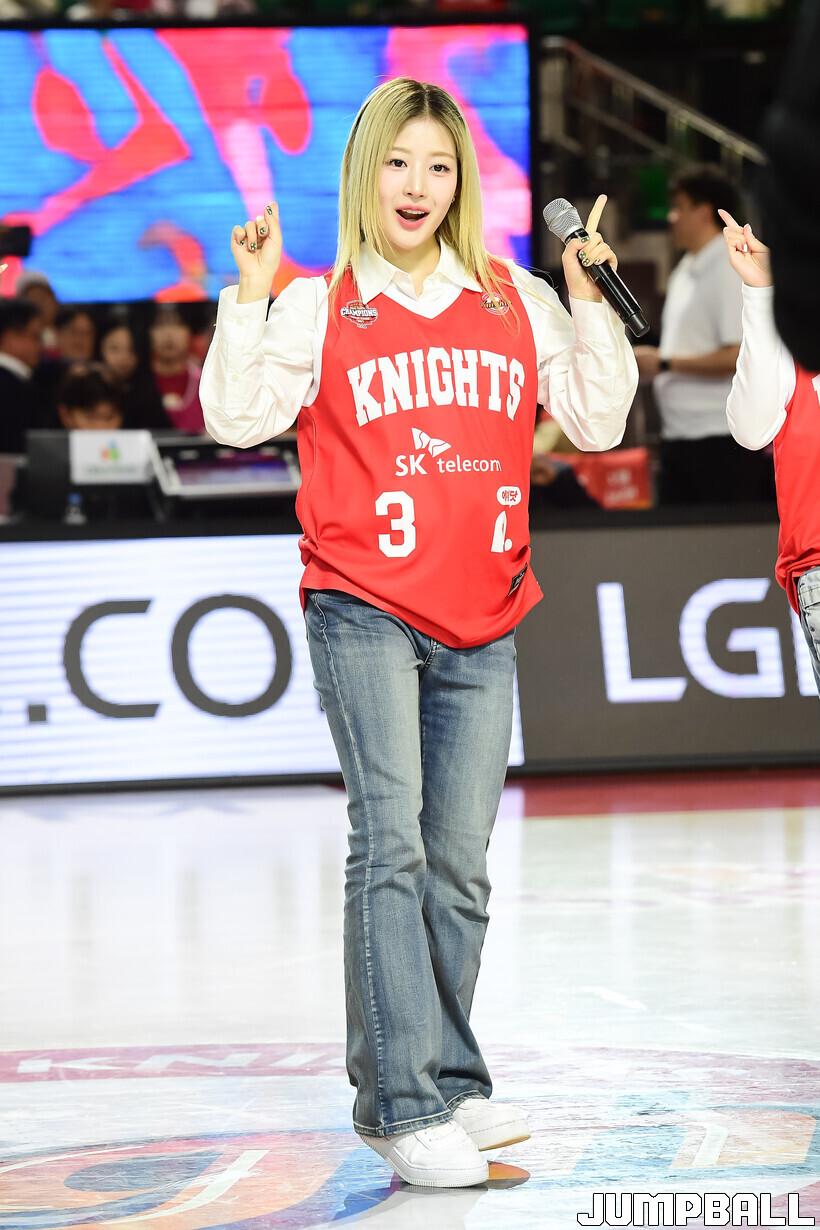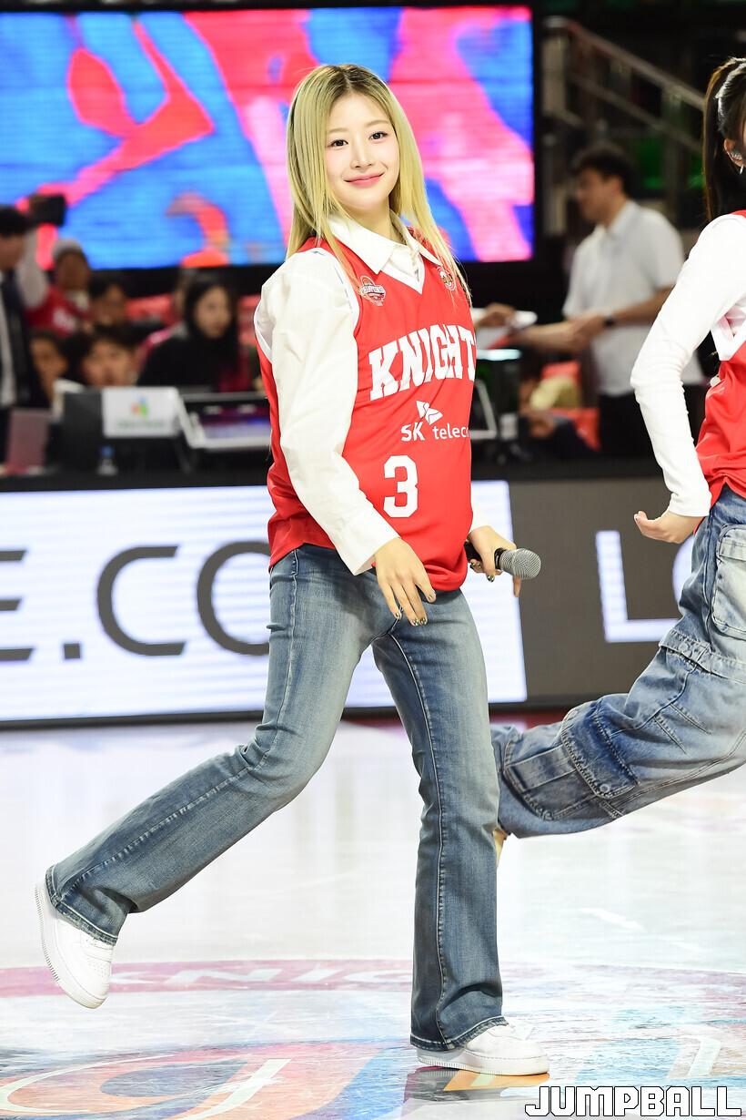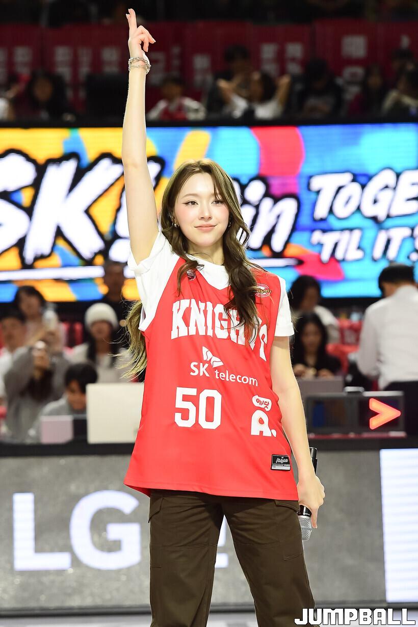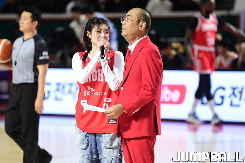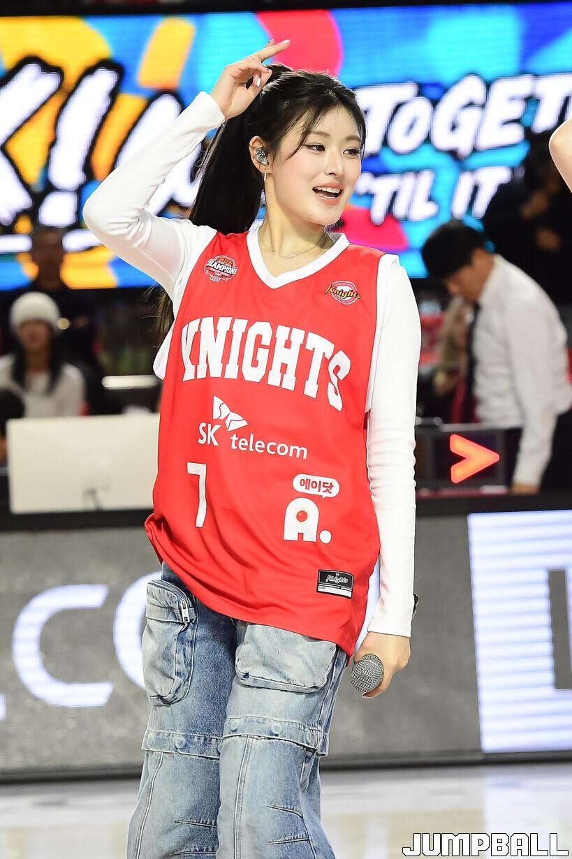 [점프볼=잠실학생/박상혁 기자] 17일 잠실학생체육관에서 열린 2025-2026 LG전자 프로농구 서울 SK와 수원 KT의 경기, 5인조 걸그룹(키나,문샤넬,예원,하나,아테나) 피프티 피프티가 경기장을 찾아 시투와 특별 공연을 선보였다.
