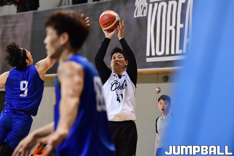 [점프볼=신촌/박상혁 기자] 3일 연세대학교 신촌캠퍼스 체육관에서 열린 '2025 KOREA CUP 최강전' 아울스와 업템포의 준결승 경기, 아울스 전상용이 3점슛을 시도하고 있다.