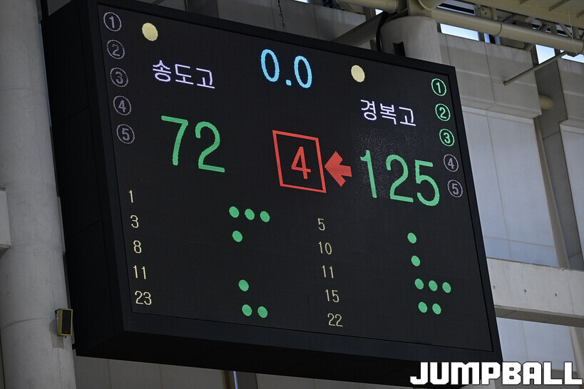 [점프볼=영광/문복주 기자] 10일 전라남도 영광군 영광 스포티움 국민체육센터에서 열린 제51회 협회장기 전국남녀중고농구대회 남고부 송도고와 경복고의 경기에서 경복고가 125-72로 송도고에 완승을 했다.