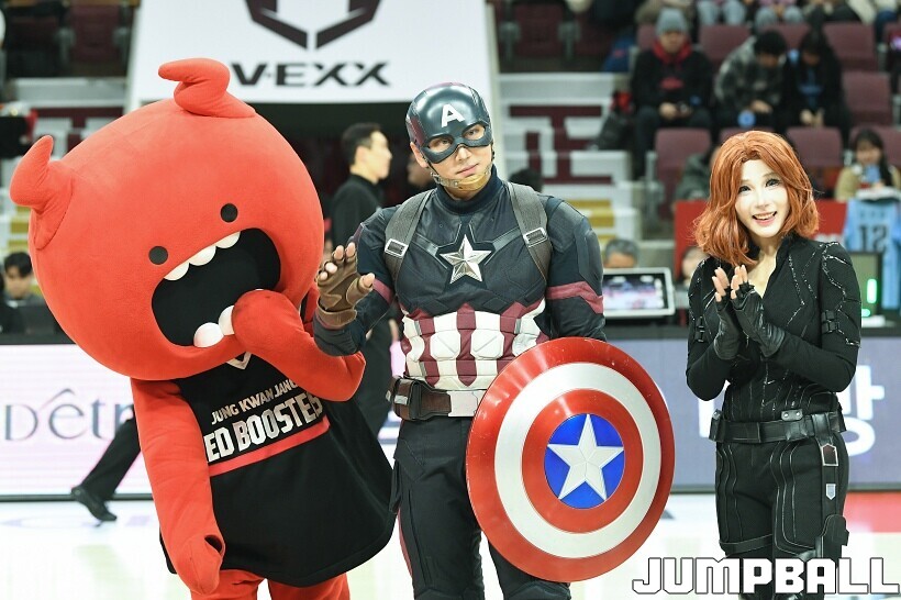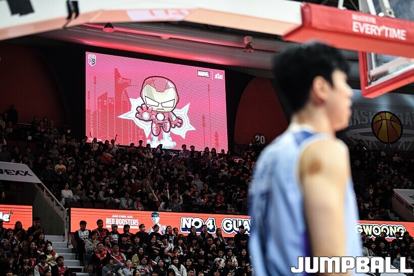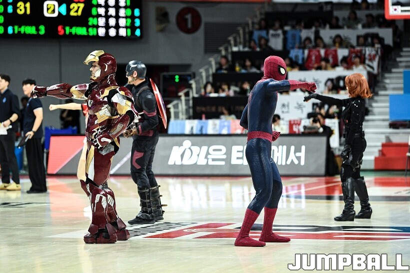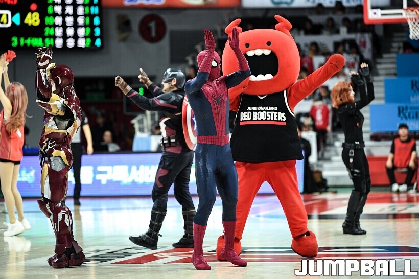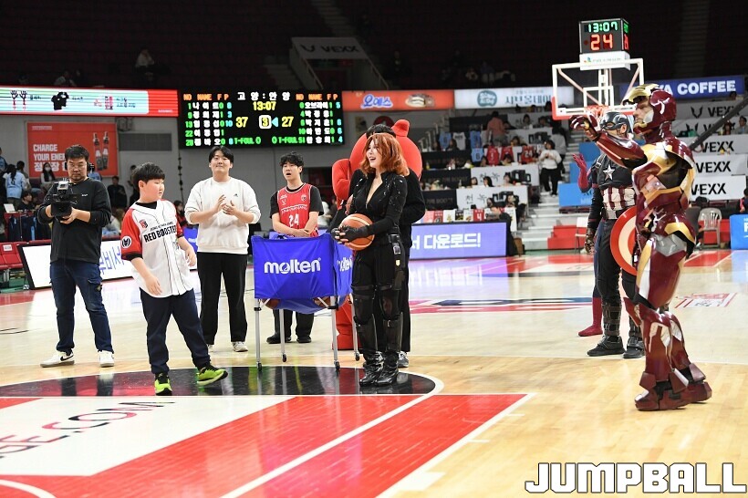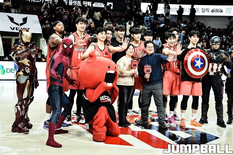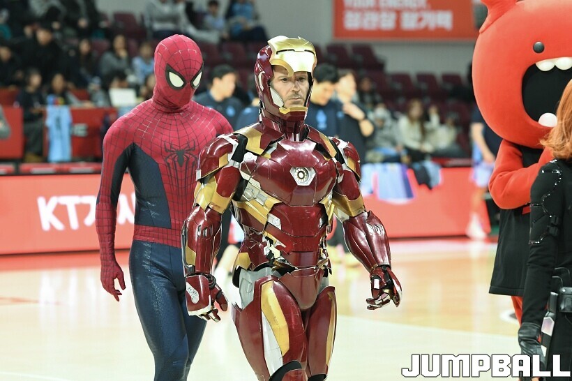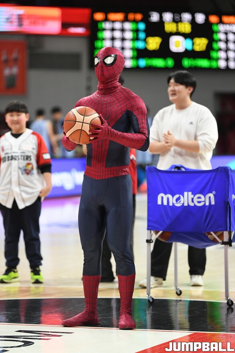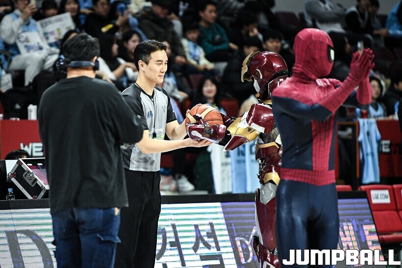 [점프볼=안양/유용우 기자] 23일 안양 정관장 아레나에서 열린 2025-2026 LG전자 프로농구 안양 정관장과 고양 소노의 경기, 해당 경기는 월트디즈니 컴퍼니 코리아와 협업하여 마블 테마의 경기 이벤트 ‘마블 매치(MARVEL MATCH)’로 개최됐다. 현장에는 마블 캐릭터 코스튬을 입은 마블 히어로들이 팬들이 함께하는 포토존, ‘응원타임’, ‘하프타임 코트 이벤트’ 등 다양한 참여형 프로그램이 진행됐다.