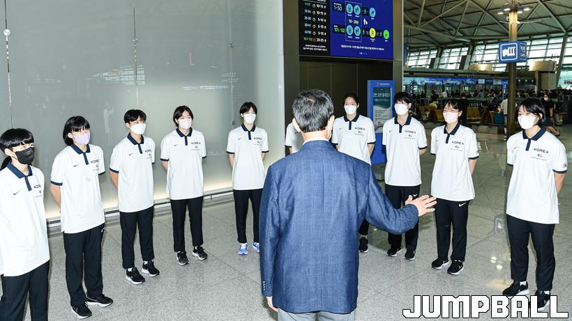 6일 오전 이상훈 감독이 지휘하는 U17 여자 농구 월드컵 대표팀이 인천 국제 공항 제 1터미널을 통해서 결전지인 헝가리로 향했다. U17 여자 농구 월드컵 대표팀 출국 현장 화보.