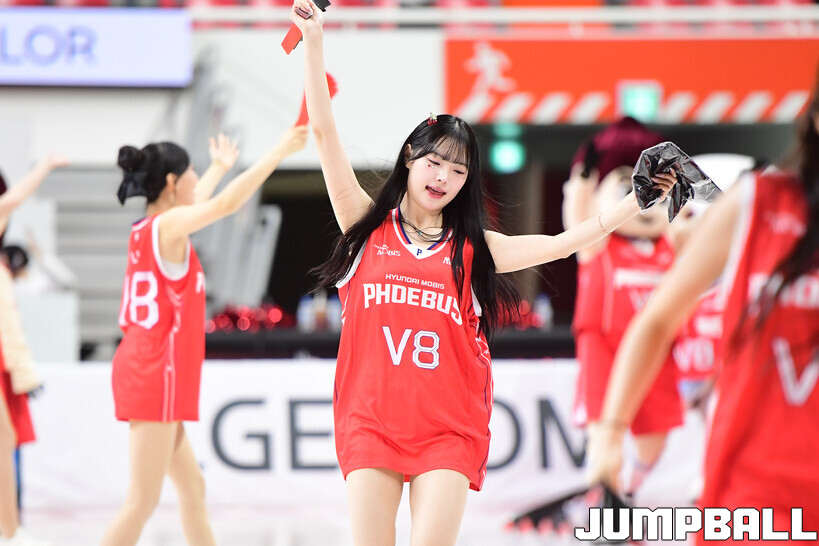 [점프볼=울산/박상혁 기자] 12일 울산동천체육관에서 열린 2025-2026 LG전자 프로농구 울산 현대모비스와 서울 삼성의 경기, 현대모비스 치어리더가 승리를 위해 팬들과 하나되어 응원을 펼치고 있다.