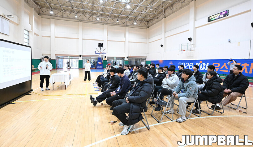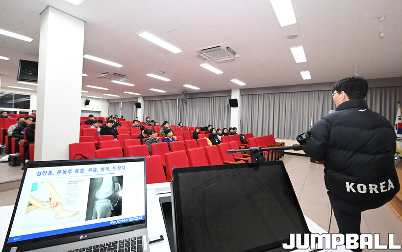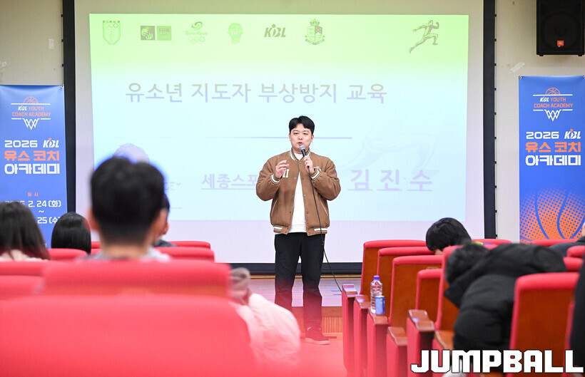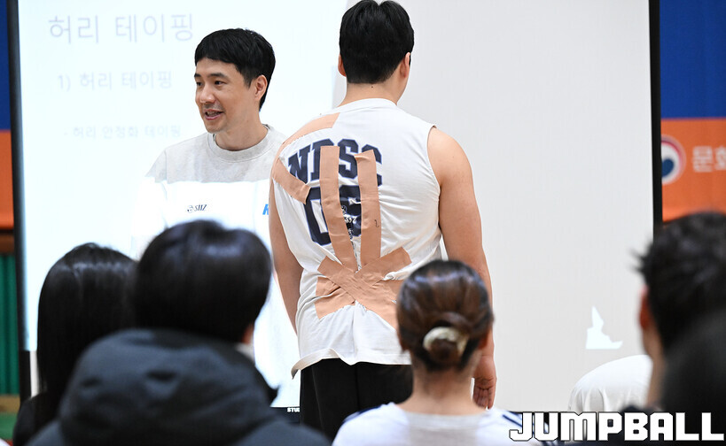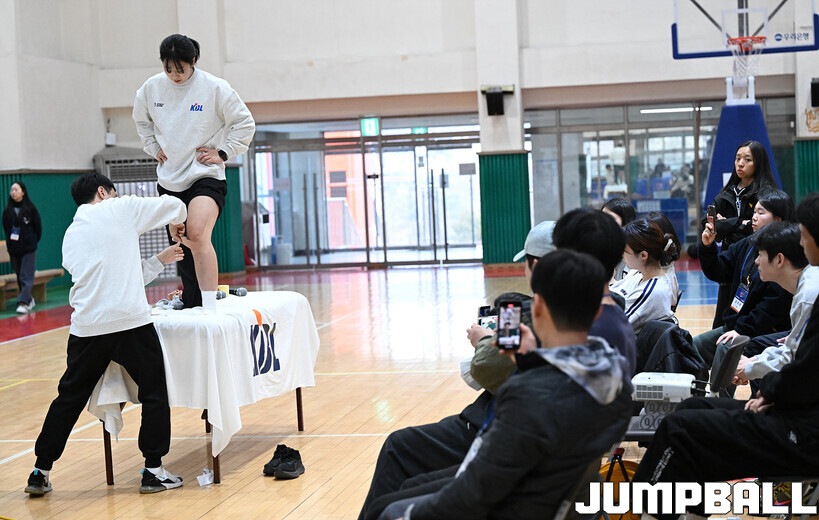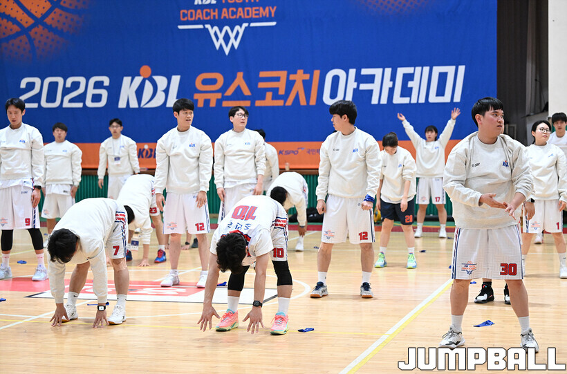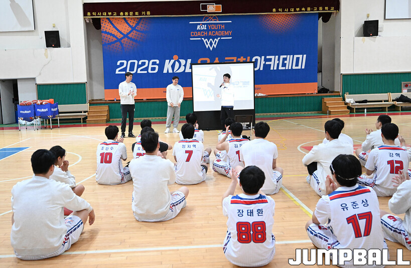 [점프볼=혜화/문복주 기자] 24일 홍대부고 체육관에서는 2026 KBL 유스 코치아카데미 3기의 일정이 열렸다. 지난 1, 2기와 마찬가지로 이틀에 걸쳐서 진행되는 본 아카데미는, 1일 차 일정에서는 부상 예방 테이핑법 교육과 기본기(슛-드리블-패스)지도법을 익히는 시간을 진행 했다.