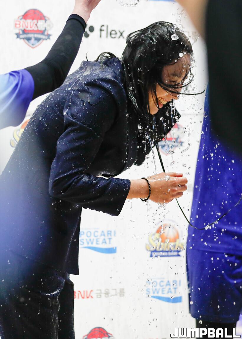앞서 언급했듯 최윤아 감독의 첫 승리도 나왔다. 물세례도 빠질 수 없었다. 선수들은 모두 기쁜 마음으로 달려갔다.