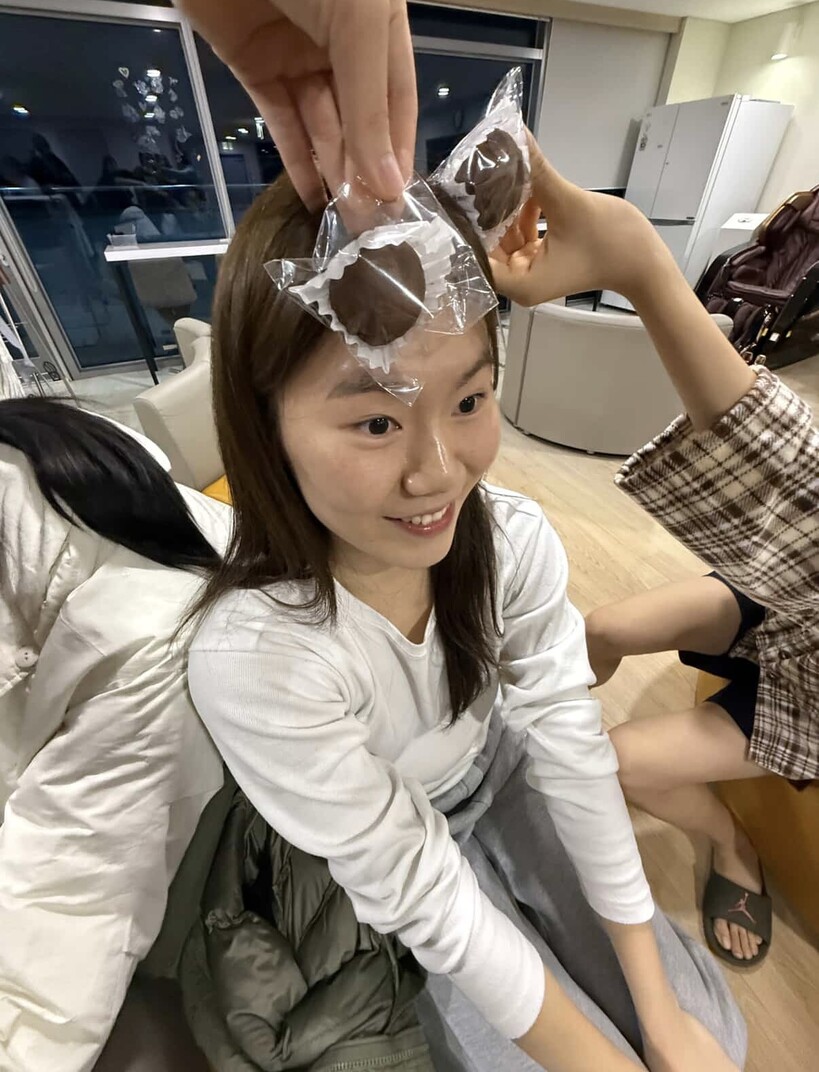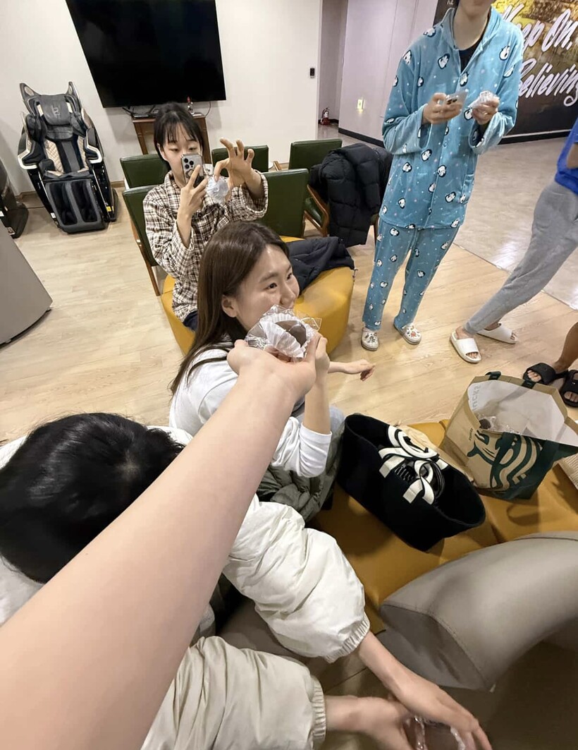 “저희 팀은 지금 출퇴근하는 선수들 몇몇이 있어요. 지수랑 (강)이슬 언니, (김)민정 언니, (염)윤아 언니만 빼면 나머지는 다 숙소에서 지내거든요? 근데 그 넷을 빼면, 숙소에 남은 사람들 중에선 제가 제일 나이가 많아요. 밤에 두쫀쿠를 만들어서 가면, ‘다 나와!’하면서 놀 수 있겠다 싶었죠. 저희끼리 모여서 잘 놀거든요.”