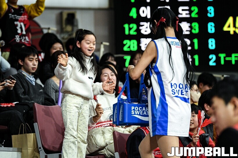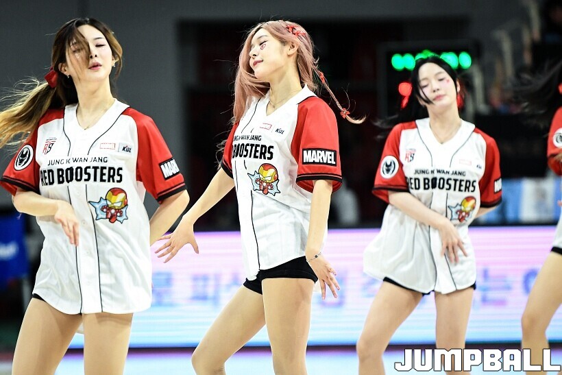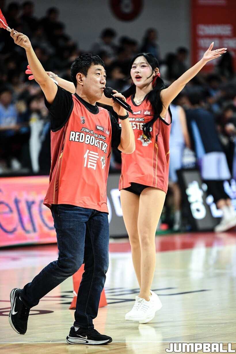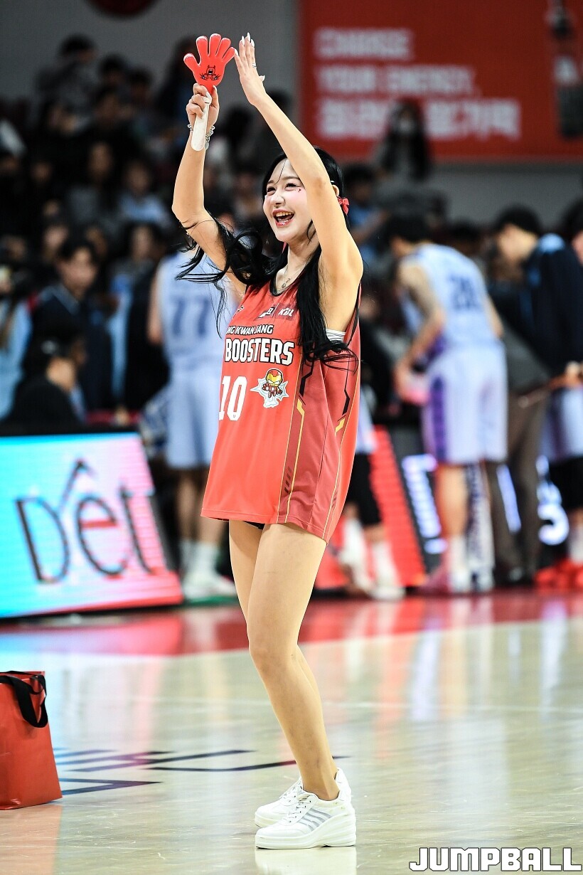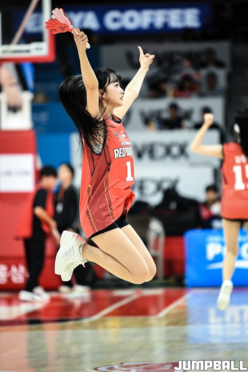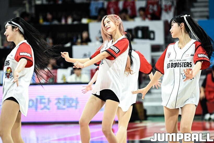 [점프볼=안양/유용우 기자] 23일 안양 정관장 아레나에서 열린 2025-2026 LG전자 프로농구 안양 정관장과 고양 소노의 경기, 정관장 치어리더들과 응원단이 농구팬들의 함성을 이끌며 정관장의 승리를 기원하고 있다.