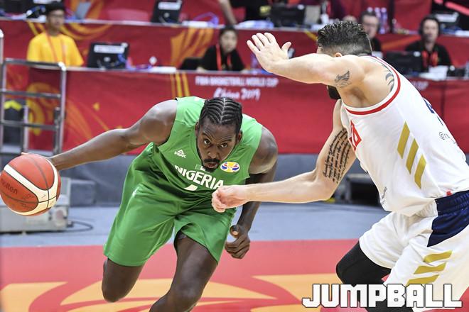 [점프볼=우한(중국)/홍기웅 기자] 31일 중국 우한스포츠센터에서 열린 '2019 FIBA 농구월드컵' 러시아와 나이지리아의 경기. 나이지리아 아미누가 드리블 돌파를 시도하고 있다