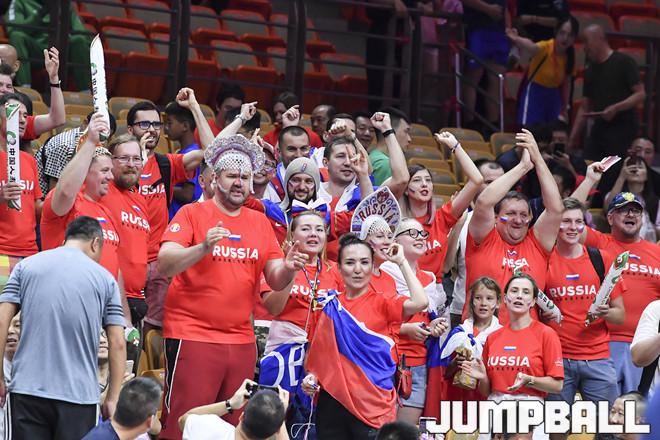 [점프볼=우한(중국)/홍기웅 기자] 31일 중국 우한스포츠센터에서 열린 '2019 FIBA 농구월드컵' 러시아와 나이지리아의 경기. 러시아 응원단이 열정적인 응원을 펼치고 있다.
