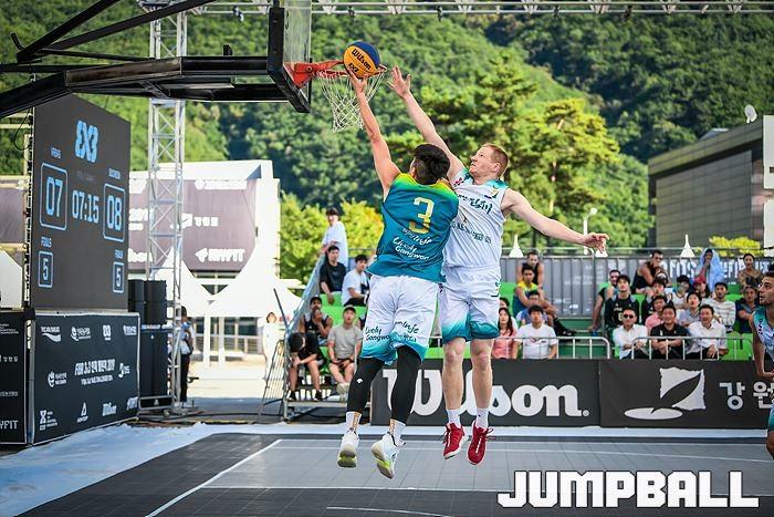 [점프볼=인제/유용우 기자] 31일 강원도 인제군 정중앙휴게소 특설코트에서 열린 FIBA 3x3 인제 챌린저 2019 1일차 경기가 열렸다. 팀 부천 박진수가 레이업을 올리고 있다.