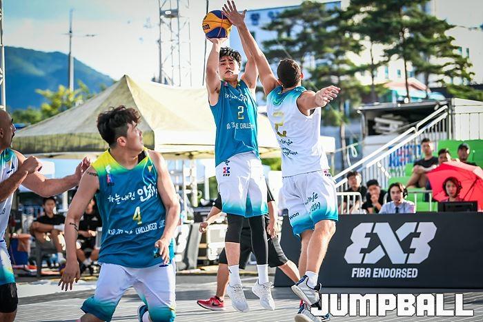 [점프볼=인제/유용우 기자] 31일 강원도 인제군 정중앙휴게소 특설코트에서 열린 FIBA 3x3 인제 챌린저 2019 1일차 경기가 열렸다. 홍천 김훈이 중거리슛을 던지고 있다.