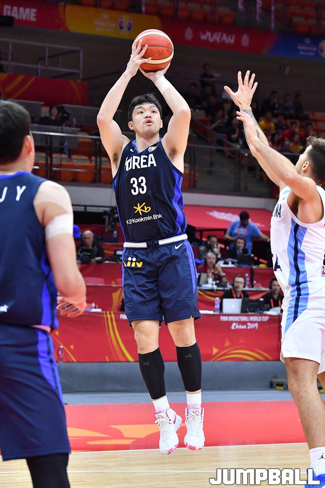 [점프볼=우한(중국)/홍기웅 기자] 31일 중국 우한스포츠센터에서 열린 '2019 FIBA 농구월드컵' 아르헨티나와 대한민국의 경기. 이승현이 점프슛을 시도하고 있다.
