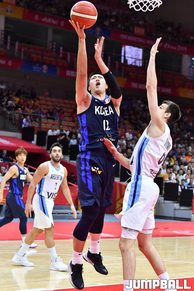 [점프볼=우한(중국)/홍기웅 기자] 31일 중국 우한스포츠센터에서 열린 '2019 FIBA 농구월드컵' 아르헨티나와 대한민국의 경기. 정효근이 레이업을 시도하고 있다.