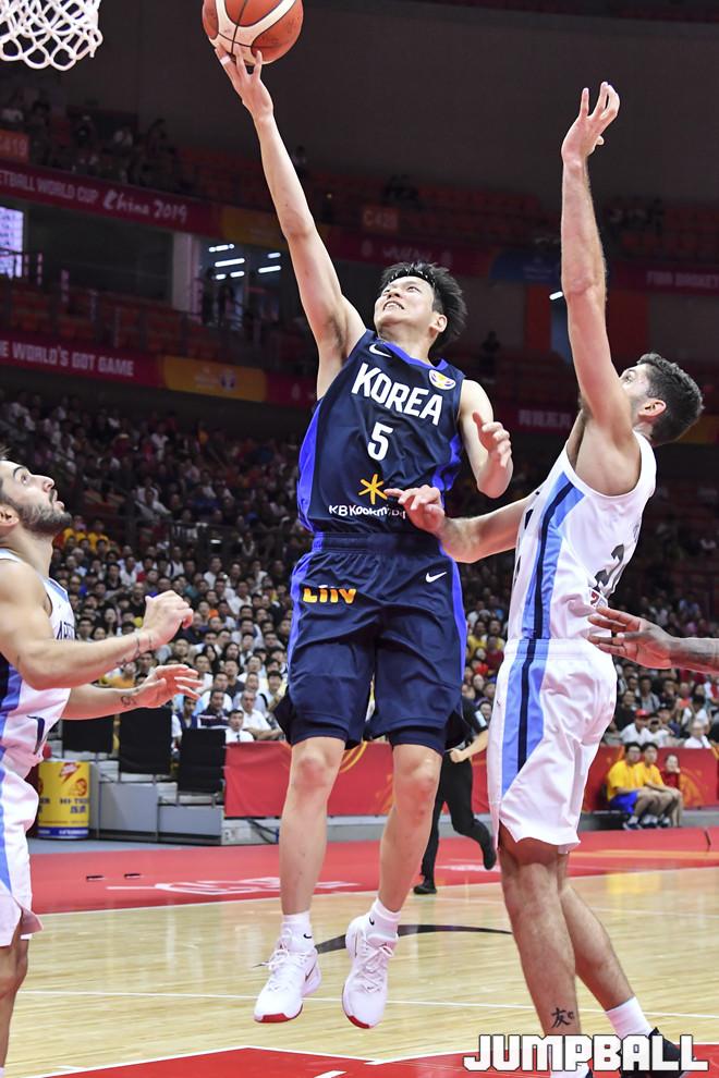 [점프볼=우한(중국)/홍기웅 기자] 31일 중국 우한스포츠센터에서 열린 '2019 FIBA 농구월드컵' 아르헨티나와 대한민국의 경기. 김선형이 스텝후 레이업을 올려넣고 있다.