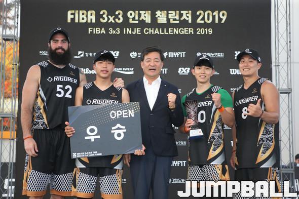 1일 강원도 인제군 정중앙휴게소 특별코트에서 열린 2019 KXO 5라운드 겸 인제투어 각종별 우승자들이 기념촬영을 하고 있다.