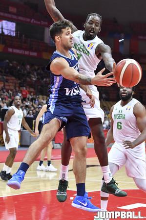 [점프볼=우한(중국)/홍기웅 기자] 2일 중국 우한스포츠센터에서 열린 '2019 FIBA 농구월드컵' 나이지리아와 아르헨티나의 경기. 아르헨티나 선수들이 스콜라가 파울로 쓰러지자 일으켜주고 있다.