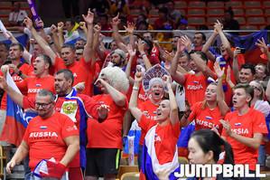 [점프볼=우한(중국)/홍기웅 기자] 2일 중국 우한스포츠센터에서 열린 '2019 FIBA 농구월드컵' 대한민국과 러시아의 경기. 러시아 모토빌로프가 드리블로 라건아를 제치고 있다.