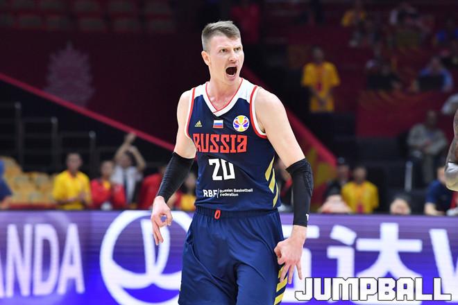 [점프볼=우한(중국)/홍기웅 기자] 2일 중국 우한스포츠센터에서 열린 '2019 FIBA 농구월드컵' 대한민국과 러시아의 경기. 러시아 보론트세비치가 3점슛 득점후 세레모니를 선보이고 있다.