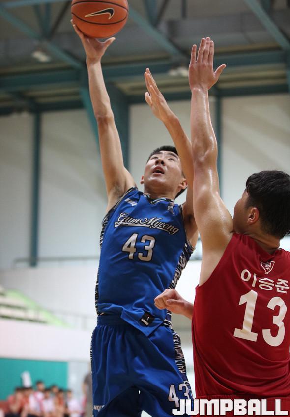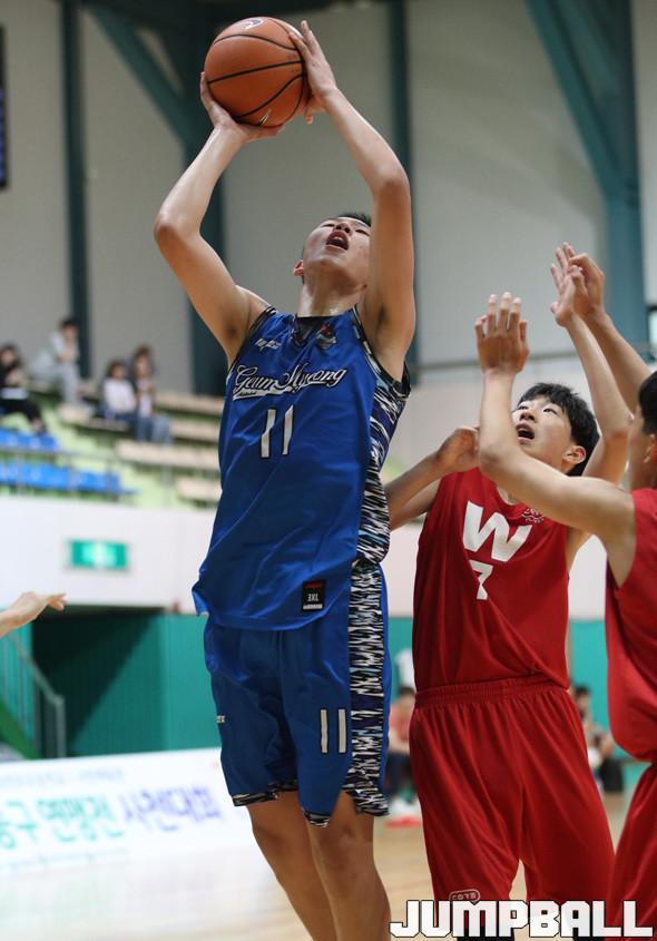 2일 경남 삼천포 실내체육관에서 열린 제49회 추계전국남녀중고농구대회 남중부 준결승전 첫 번째 경기, 우성희의 높이를 앞세운 금명중이 74-66으로 휘문중을 꺾고 결승전에 진출했다.