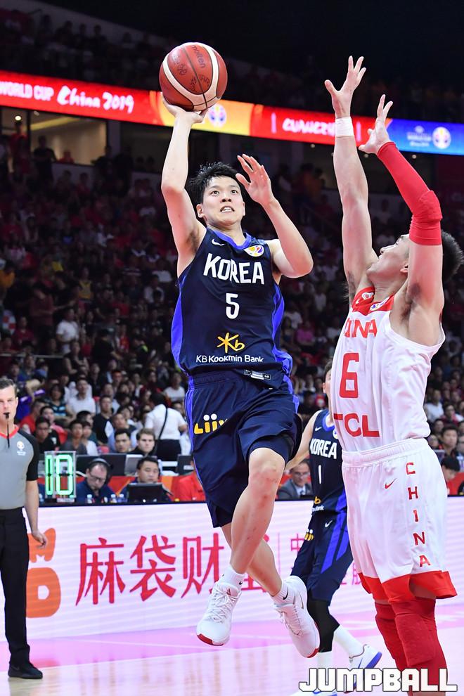 [점프볼=광저우(중국)/홍기웅 기자] 6일 중국 광저우체육관에서 '2019 FIBA 농구월드컵 순위결정전' 중국과 한국의 경기. 김선형이 중국 수비를 앞에두고 슛을 던지고 있다.