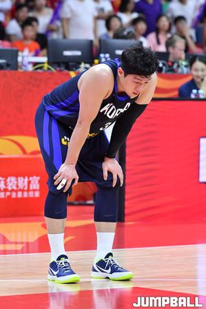[점프볼=광저우(중국)/홍기웅 기자] 6일 중국 광저우체육관에서 '2019 FIBA 농구월드컵 순위결정전' 중국과 한국의 경기. 양희종이 경기가 끝나고 코트를 떠나면서 최준용의 어깨부상에 대해 걱정하고 있다.