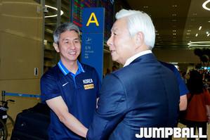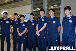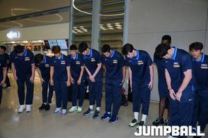 [점프볼=인천/홍기웅 기자] 9일 인천공항 제 2터미널에서 대한민국 농구대표팀이 FIBA 농구월드컵 귀국행사를 가졌다. 대한민국 농구대표팀이 손을 모아 화이팅을 외치고 있다.