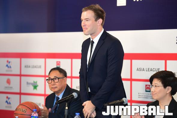 대회에 앞서 열린 기자회견장에서 동아시아리그 CEO 맷 베이어가 인사를 하고 있다.