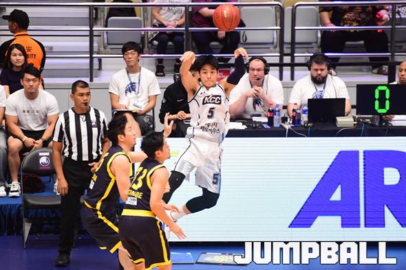[점프볼=마카오/박상혁 기자] 18일 마카오 탑섹 멀티스포츠 파빌리온에서 열린 '동아시아 슈퍼리그-터리픽12' 대회 2일차 전주KCC와 우츠노미아 브렉스의 경기, KCC 유현준이 사이드 밖으로 나가는 공을 살려내고 있다.