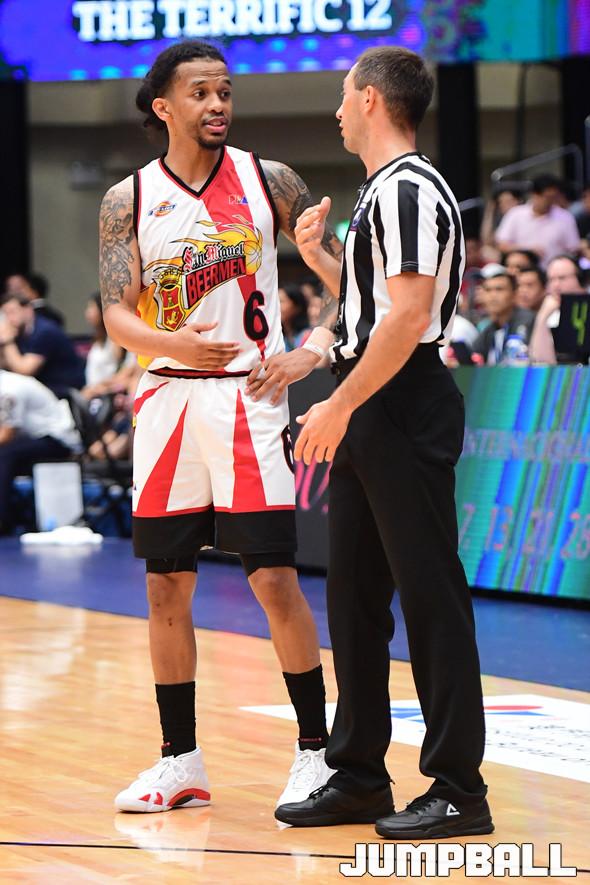 [점프볼=마카오/박상혁 기자] 19일 마카오 탑섹 멀티스포츠 파빌리온에서 열린 '동아시아 슈퍼리그-터리픽12' 대회 3일차 산미구엘 비어맨과 류큐 골든 킹스의 경기, 산미구엘 비어맨의 크리스 로스가 심판과 대화를 나누고 있다.