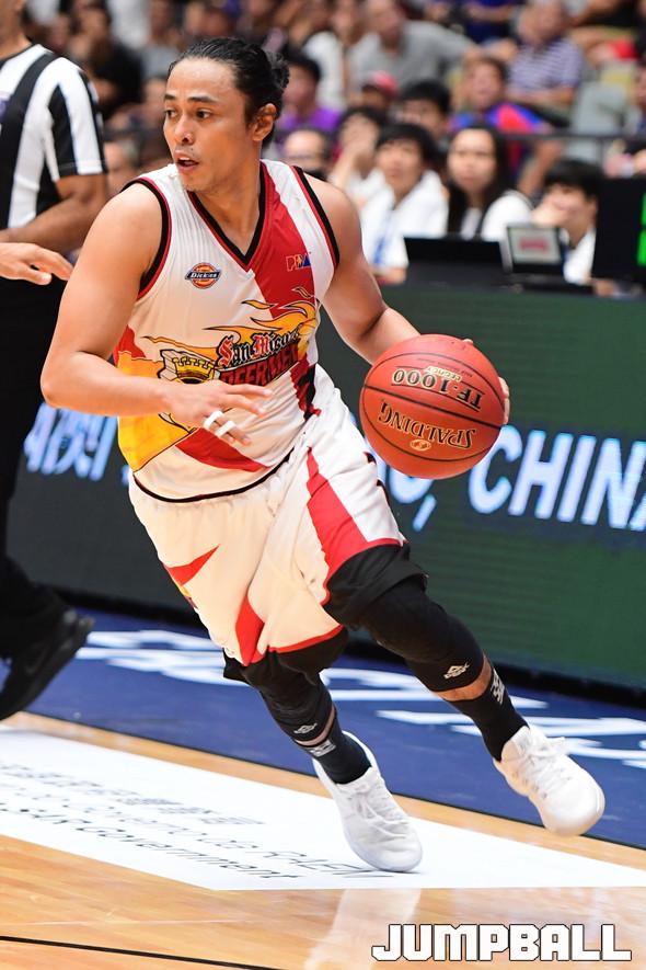[점프볼=마카오/박상혁 기자] 19일 마카오 탑섹 멀티스포츠 파빌리온에서 열린 '동아시아 슈퍼리그-터리픽12' 대회 3일차 산미구엘 비어맨과 류큐 골든 킹스의 경기, 산미구엘 비어맨의 로메오가 돌파를 시도하고 있다.