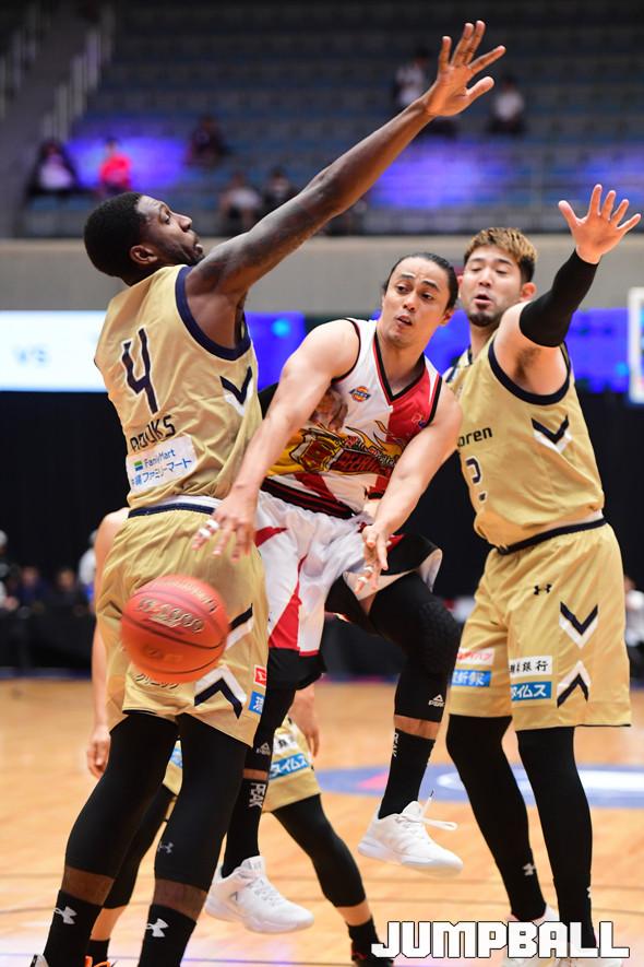 [점프볼=마카오/박상혁 기자] 19일 마카오 탑섹 멀티스포츠 파빌리온에서 열린 '동아시아 슈퍼리그-터리픽12' 대회 3일차 산미구엘 비어맨과 류큐 골든 킹스의 경기, 산미구엘 비어맨의 로메오가 수비수 사이로 패스를 시도하고 있다.