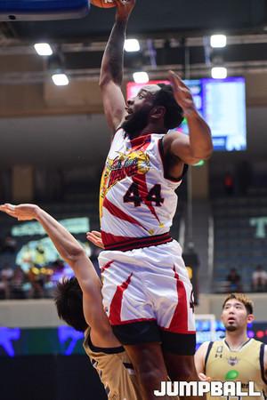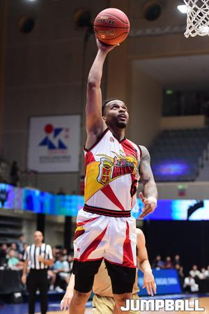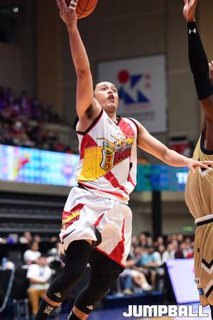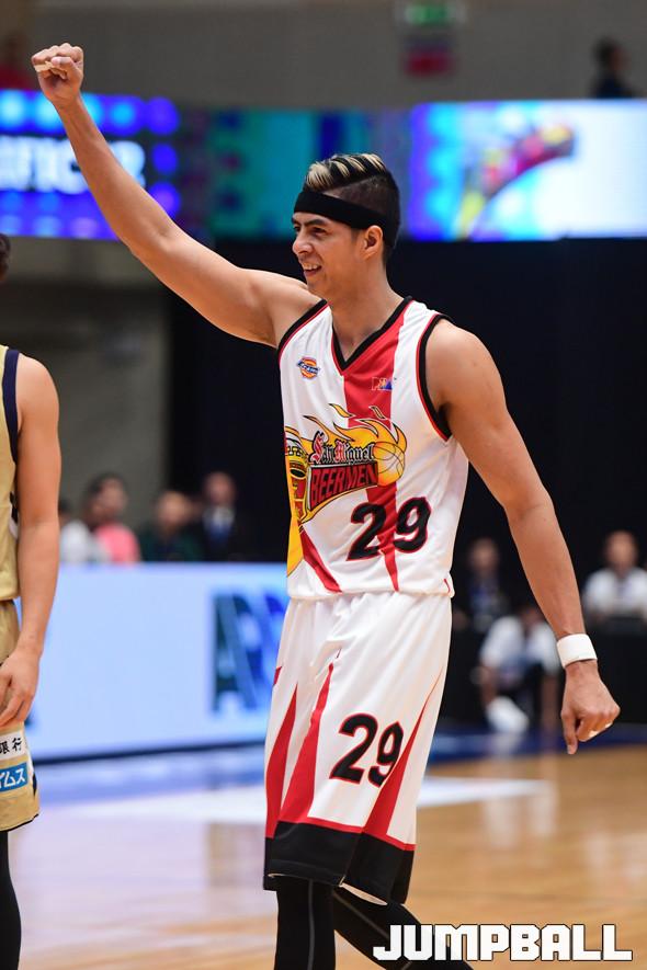[점프볼=마카오/박상혁 기자] 19일 마카오 탑섹 멀티스포츠 파빌리온에서 열린 '동아시아 슈퍼리그-터리픽12' 대회 3일차 산미구엘 비어맨과 류큐 골든 킹스의 경기, 산미구엘 비어맨의 산토스가 손을 번쩍 들고 있다.